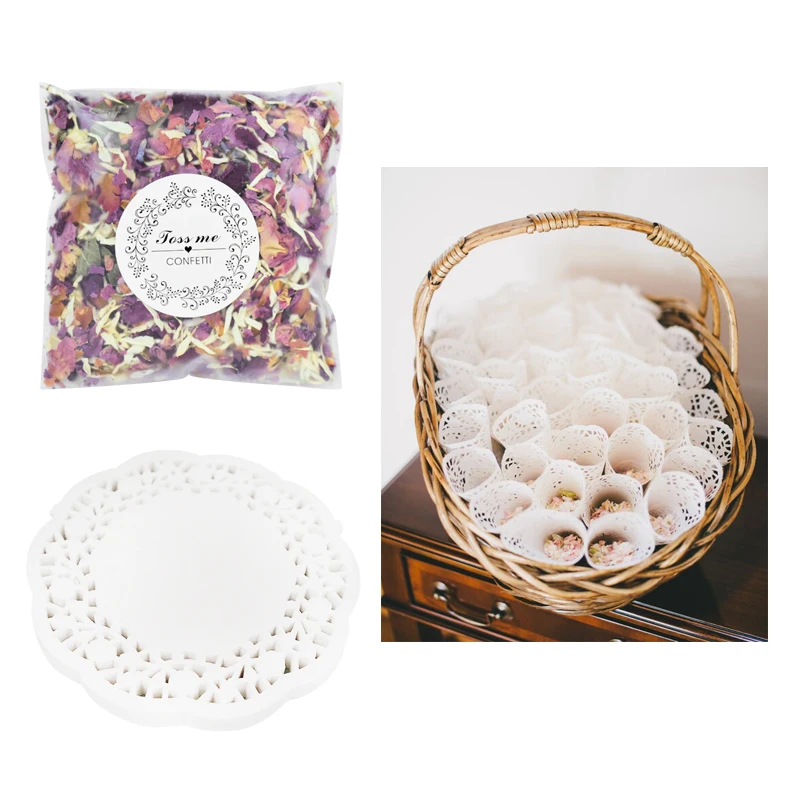 Свадебные конусы-конфетти натуральный сушеный цветок Роза лепесток конфетти конус кружева для свадебной вечеринки поставки День святого Валентина подарки Декор