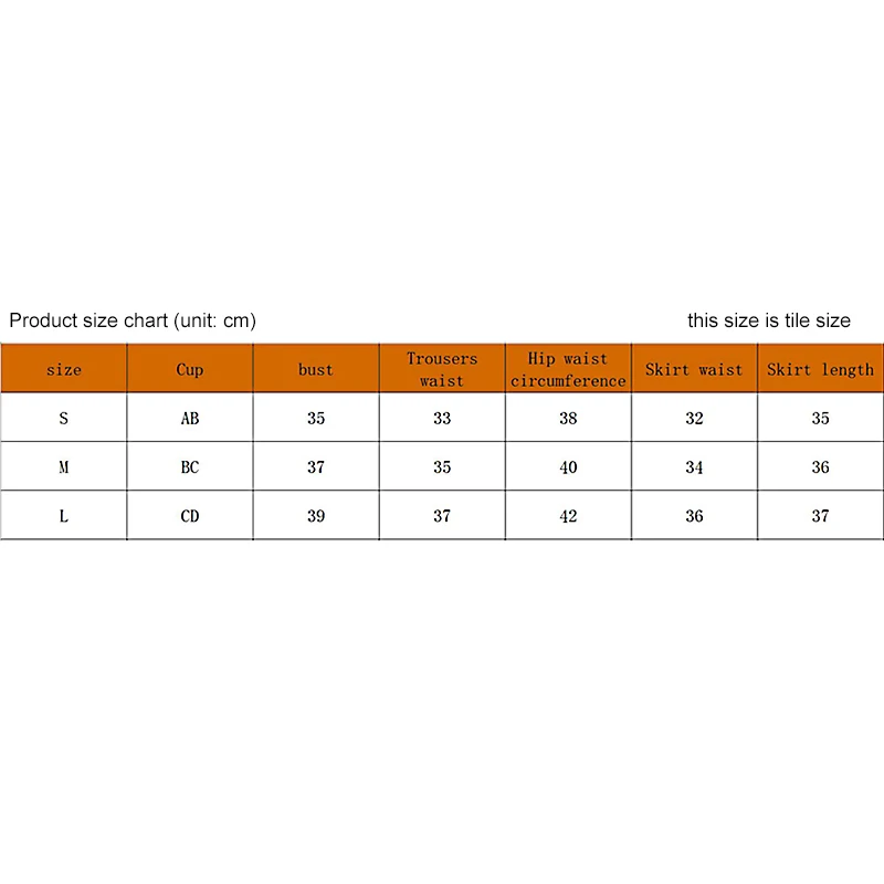 S Бюст: 70 Трусики Талия: 66 трусики бедра: 76 юбка талия: 64 Длина юбки: 35