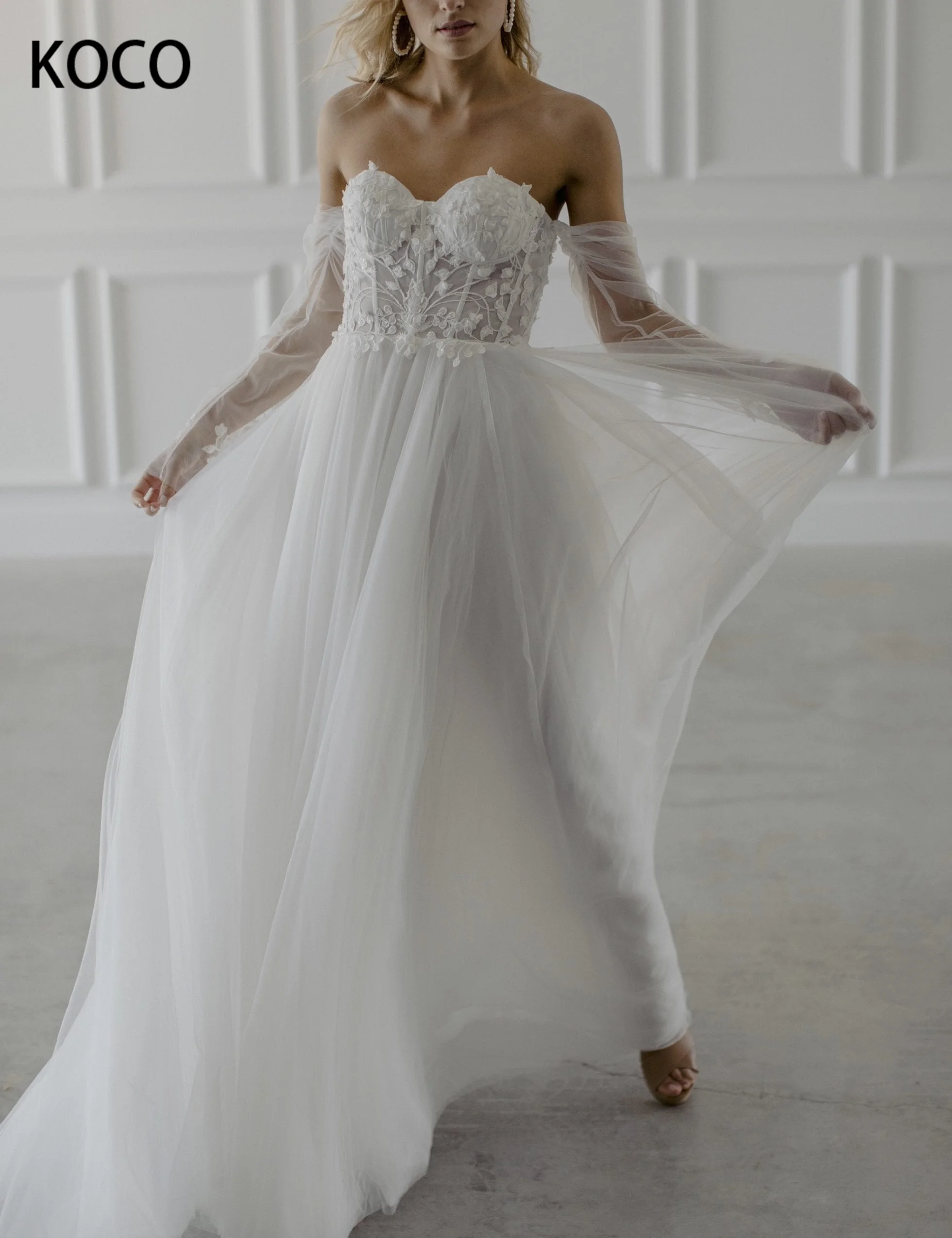 Женское свадебное платье без бретелек, из тюля
