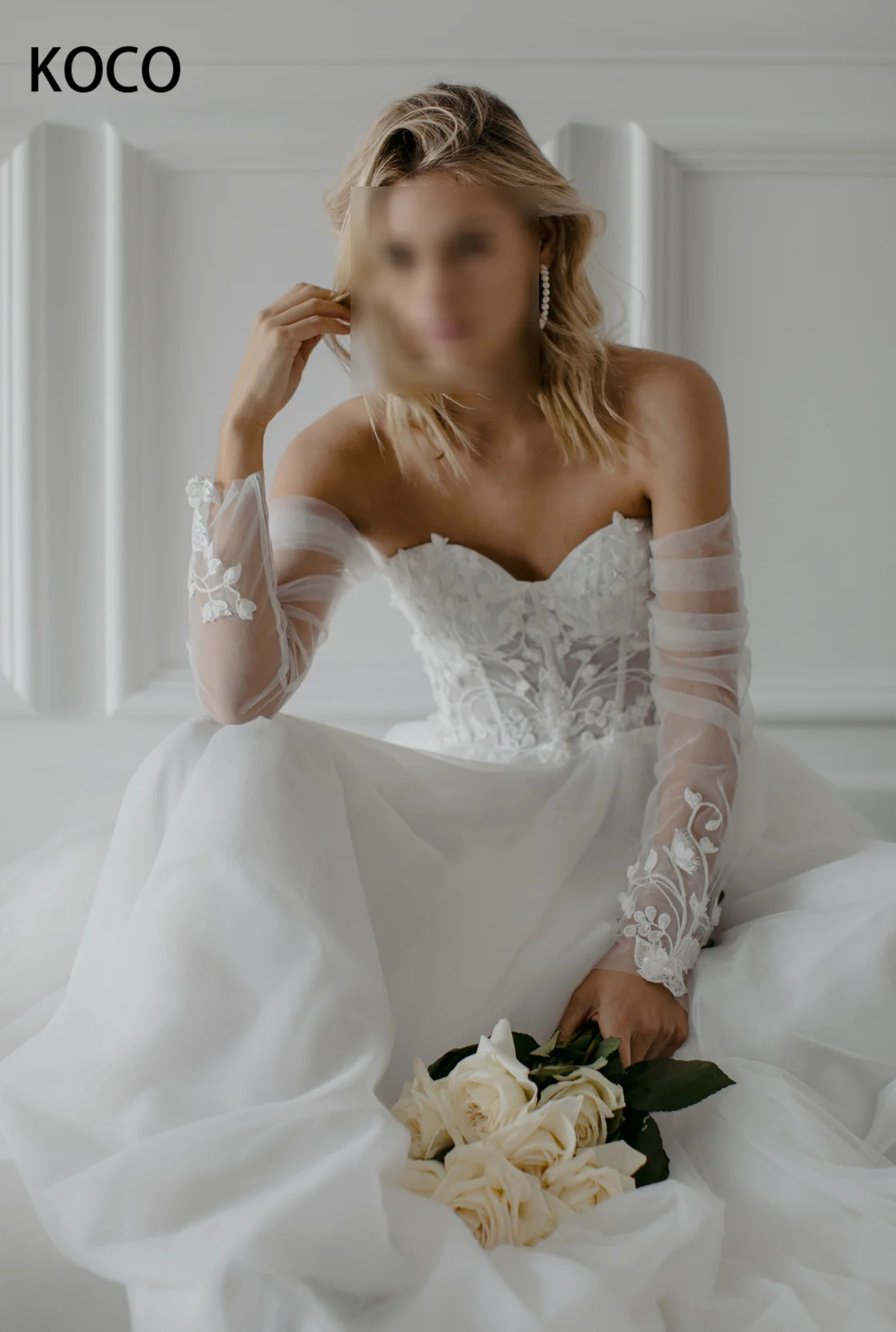 Великосветильник легкий роскошный кружевной топ с длинным рукавом M...