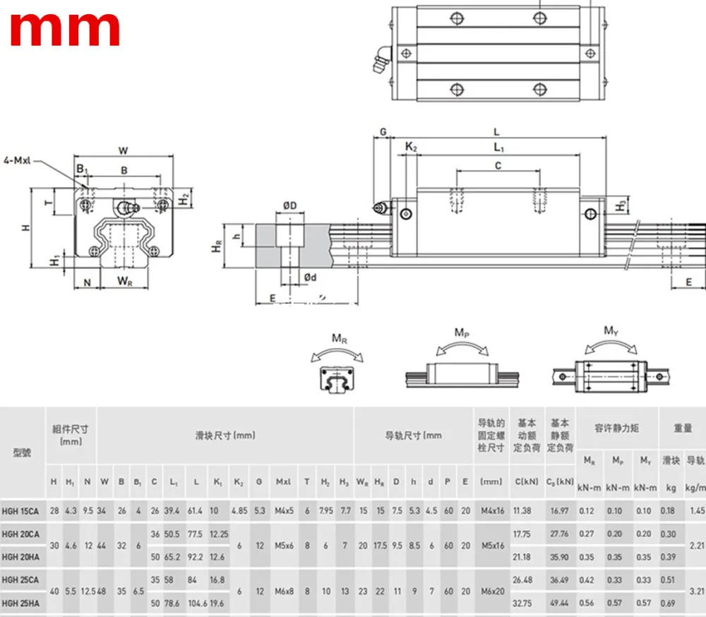 2 шт. HGR20 линейные квадратные направляющие рельсы + 4 шт. HGH20CA...