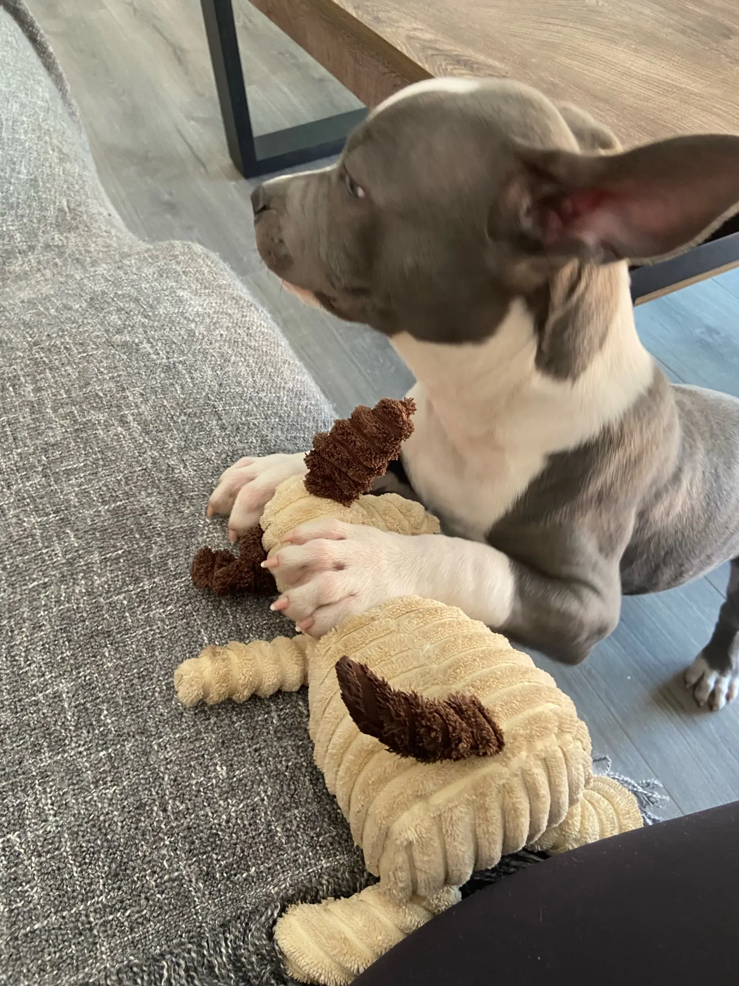 Очень красивый плюш! Моя собака любит это, это не длилось долго, но, по крайней мере, это весело и повреждает цену, это меня не беспокоит!