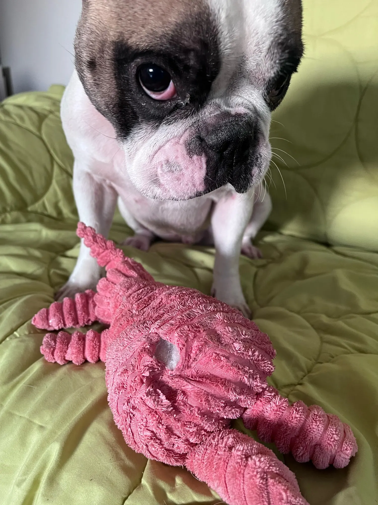 Игрушка выглядит так мило, моей собаке понравилось, она в восторге от нее.