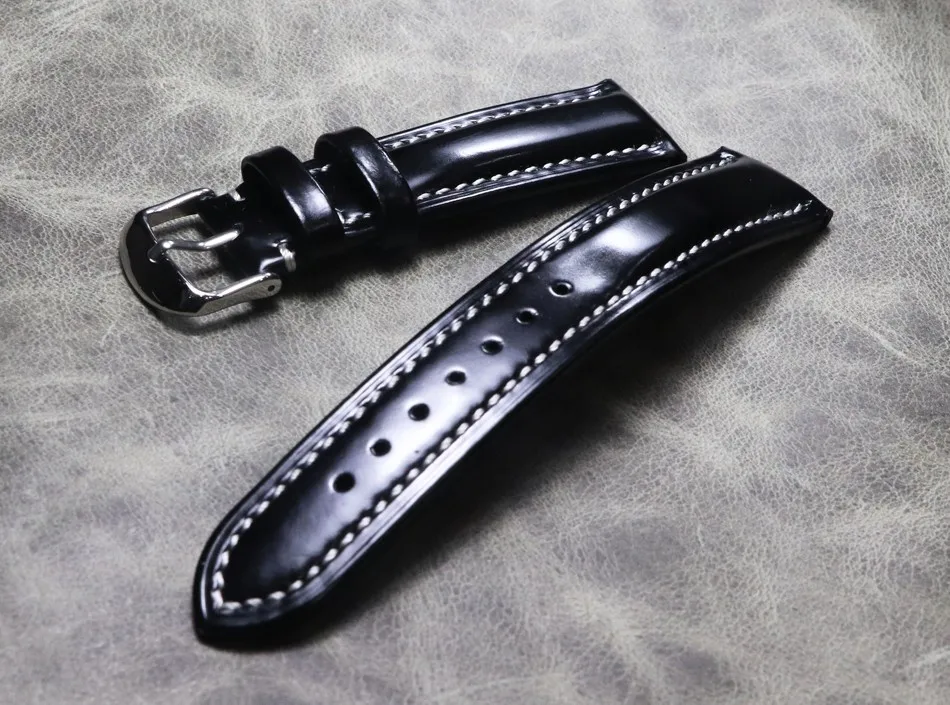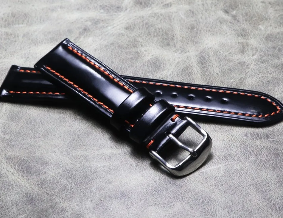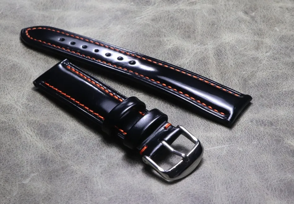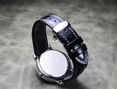 Высококачественный Итальянский черный кожаный ремешок ручной работы...