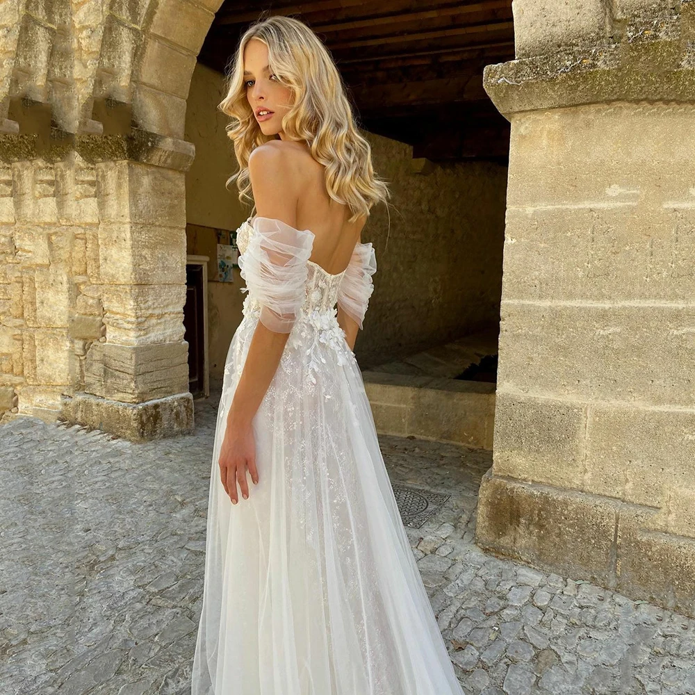 Шикарные блестящие кружевные свадебные платья UZN с аппликацией для принцессы, свадебные платья с открытыми плечами для сердечек, платье для невесты с высоким разрезом, платье для невесты