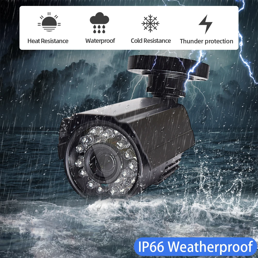 Используйте их в качестве наружных камер или крытых камер, так как они построены жестко, выдерживает любую погоду: дождь, снег, пыль и жаркие дни.С защитой от атмосферных воздействий IP66 и кабелями, просвечивающимися через подставку для защиты, гарантируем, что вы сможете ответить на их производительность, день в день.Наша камера имеет сверхпрочный металлический корпус, профессиональный IP66, устойчивый к атмосферным воздействиям, обеспечивая стабильную производительность как внутри, так и снаружи.