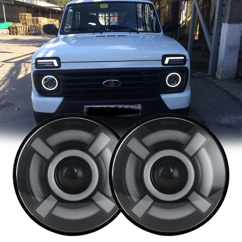 Круглые галогенные фары 2x7 дюймов светодиодный ные фары 4x4 7 дюймов ДХО для Mazda MX-5, ВАЗ 2101 Лада Нива 7 светодиодный светодиодные фары с янтарным поворотным сигналом