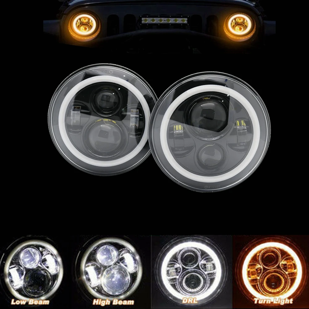 Название Модели7 Inch LED Headlight H4 Hi-Lo Beam Angel Eye Light