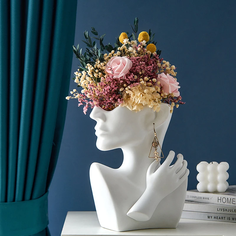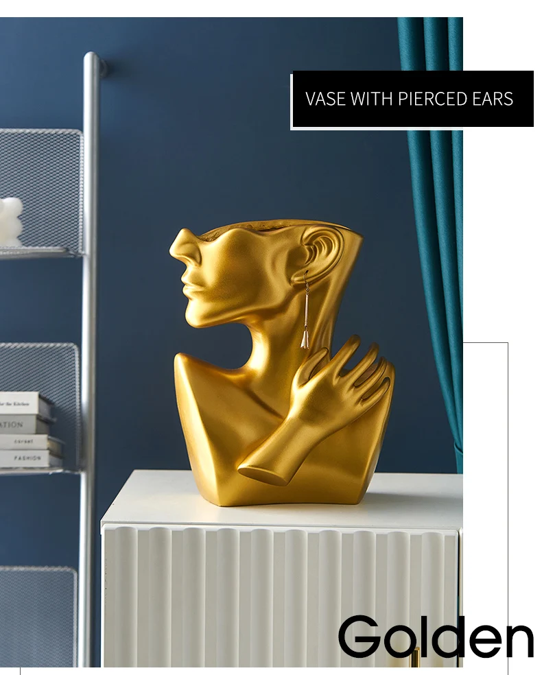 Цветочная ваза, Золотой Портрет, статуя, скандинавский Декор для дома, аксессуары, искусство, лицо, белый каучук, цветочные горшки, центральный декор стола, подарки
