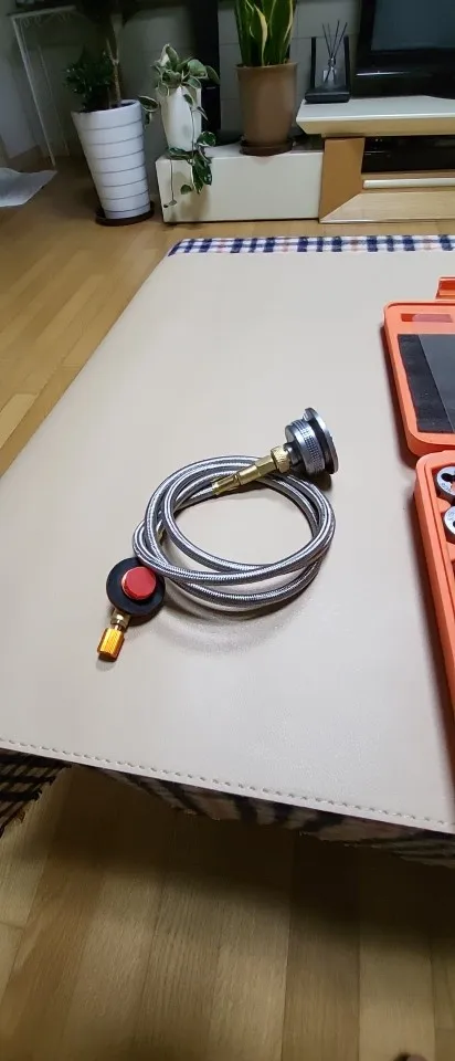 В бутанском газе этот небольшой газовый адаптер является обычной газовой горелкой (которая фиксируется, нажимая на основание газа во время соединения газа. Метод) обратите внимание, что он не установлен.