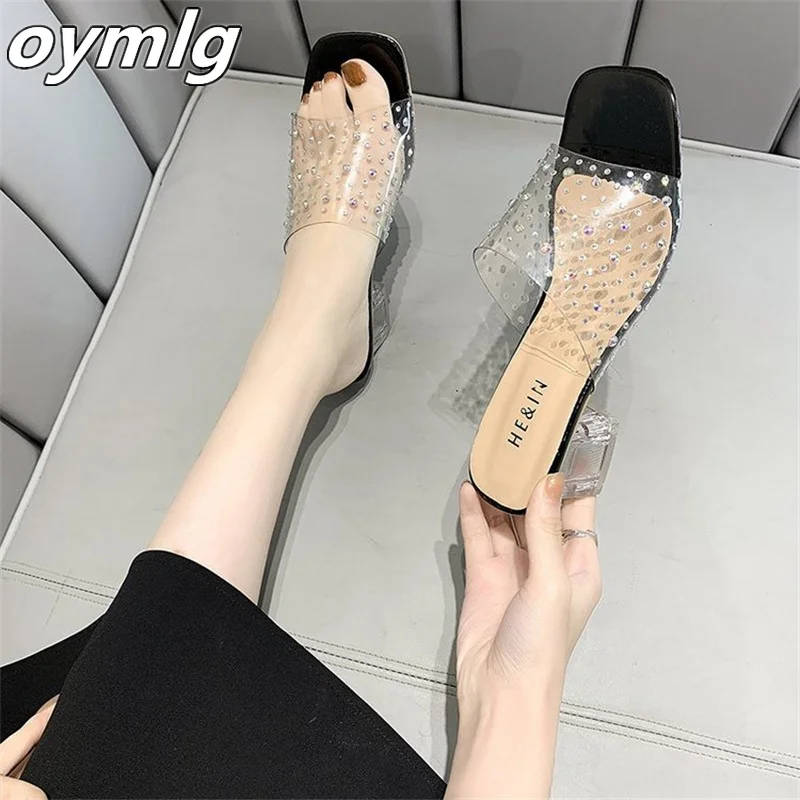 Женские шлепанцы на высоком каблуке, прозрачные сандалии с кристалл...