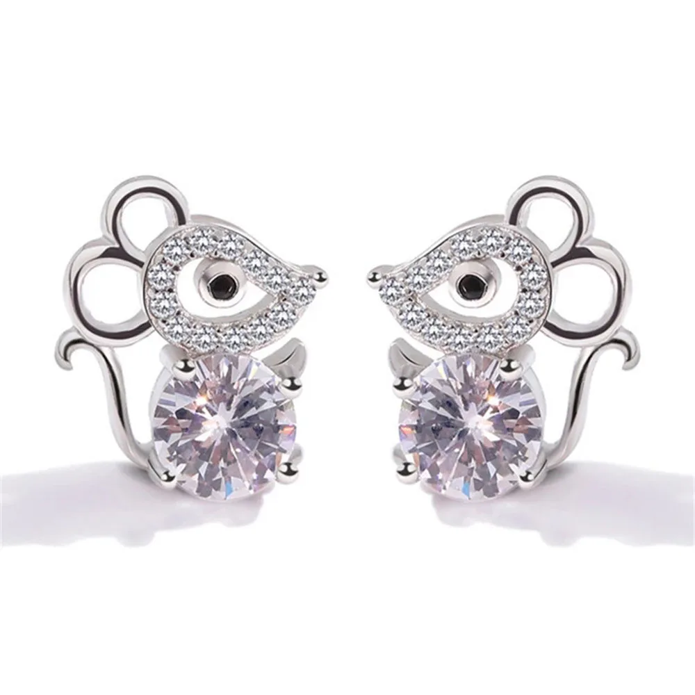 Милые женские маленькие серебряные серьги с бриллиантами в виде мыши и искусственных кристаллов Ювелирные изделия подарок в виде китайского зодиака