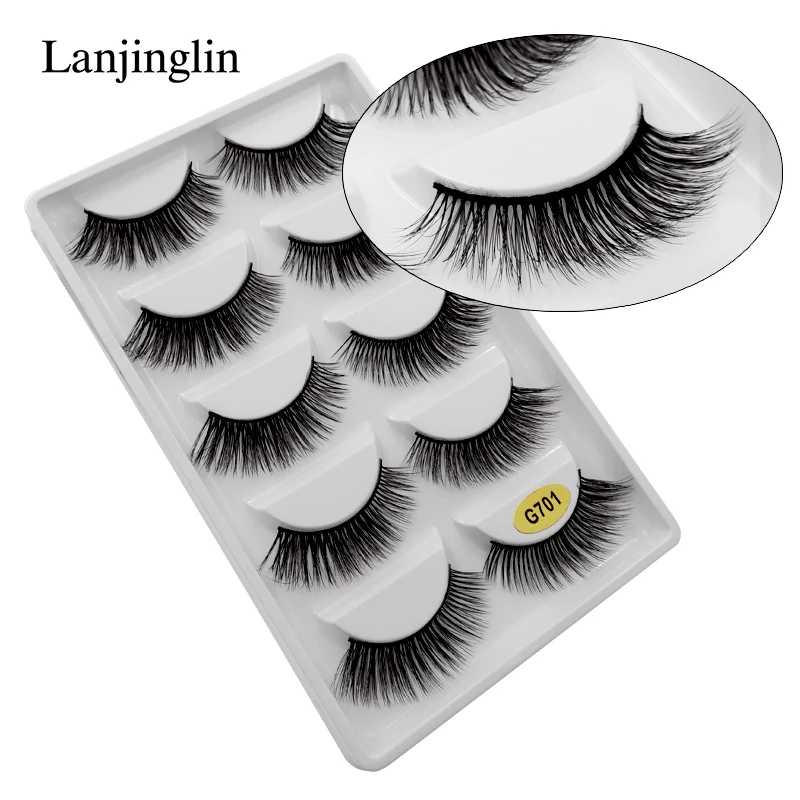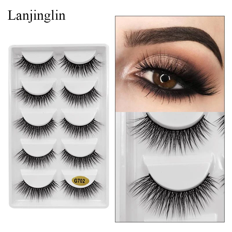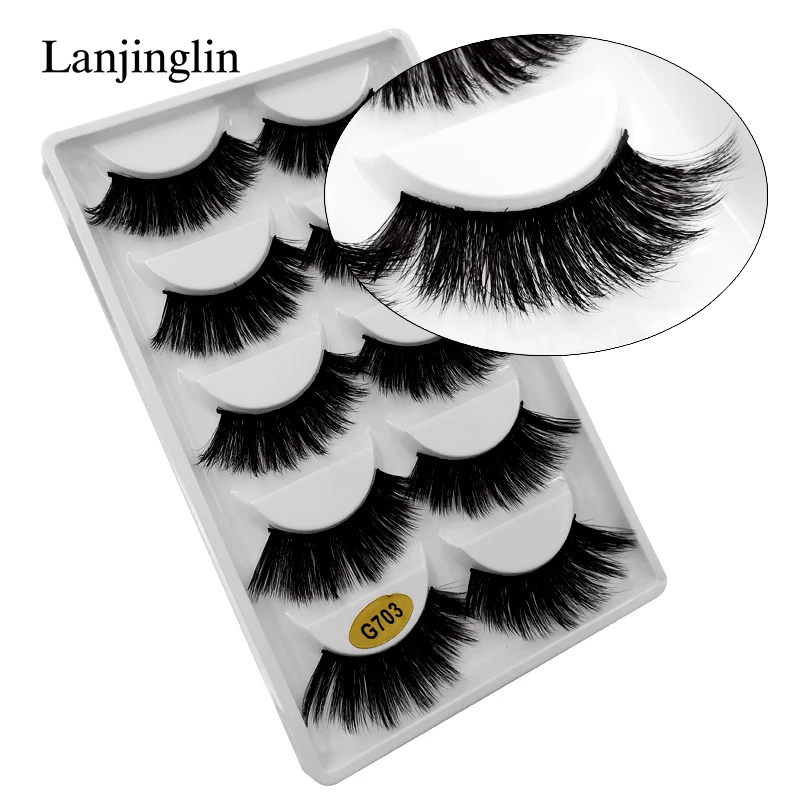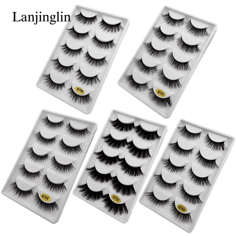 Искусственные норковые ресницы LANJINGLIN, 5 пар, натуральные Длинн...