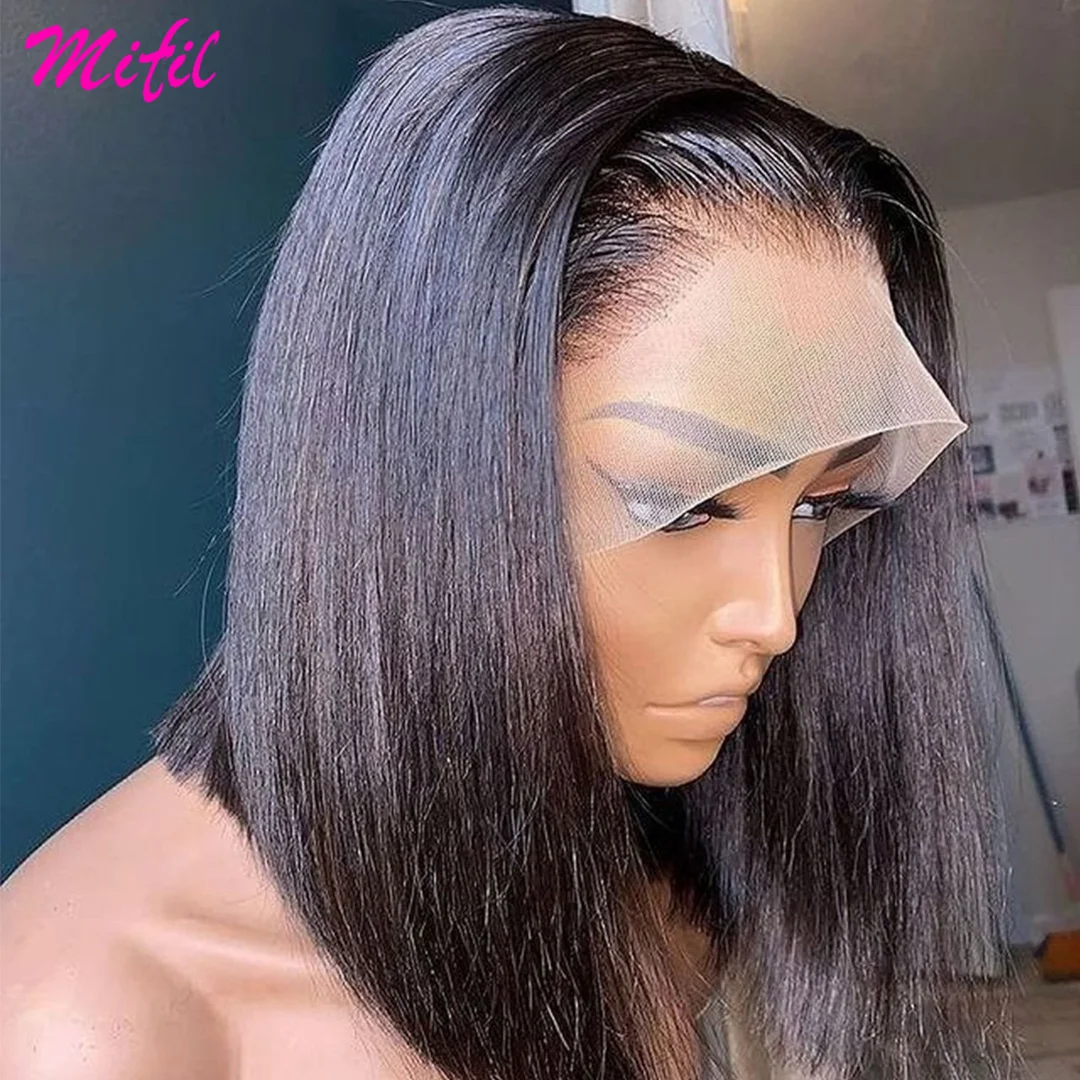 5x5 короткий парик Боб, прямые парики из человеческих волос на сетке спереди, предварительно выщипанные 13x4 прозрачные парики на сетке спереди