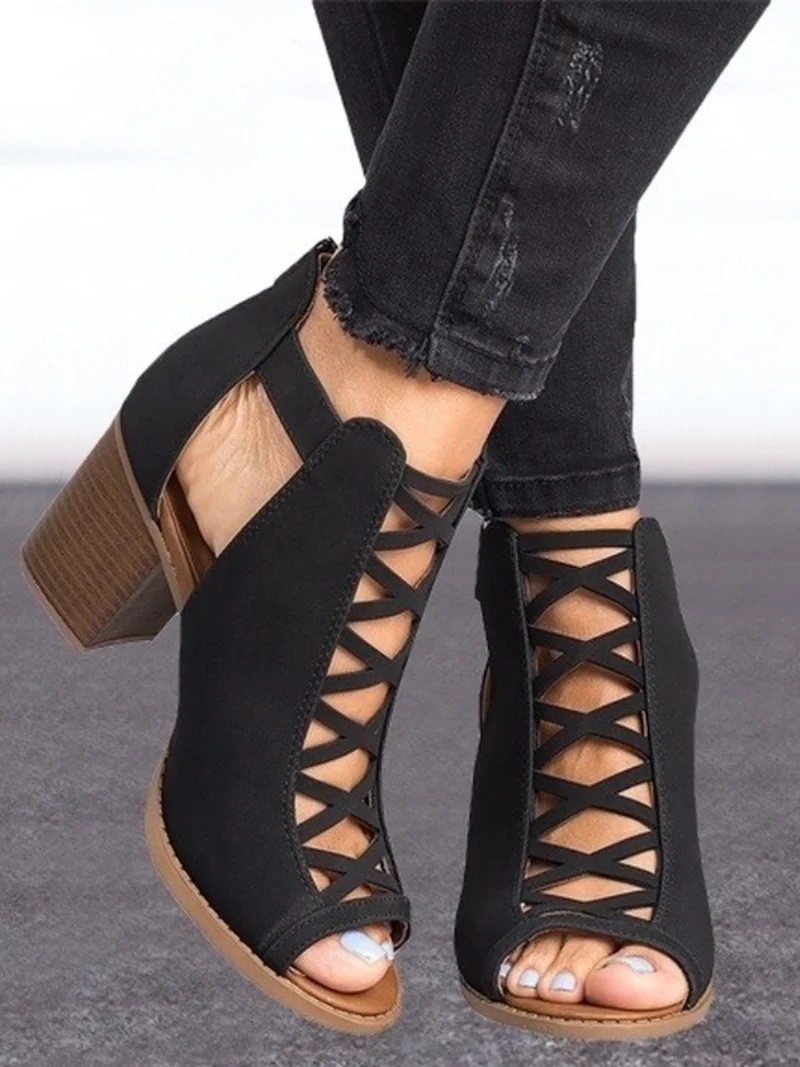 Босоножки женские однотонные на высоком каблуке, Модные ажурные сандалии с открытым носком, пикантная Повседневная Классическая обувь, лето