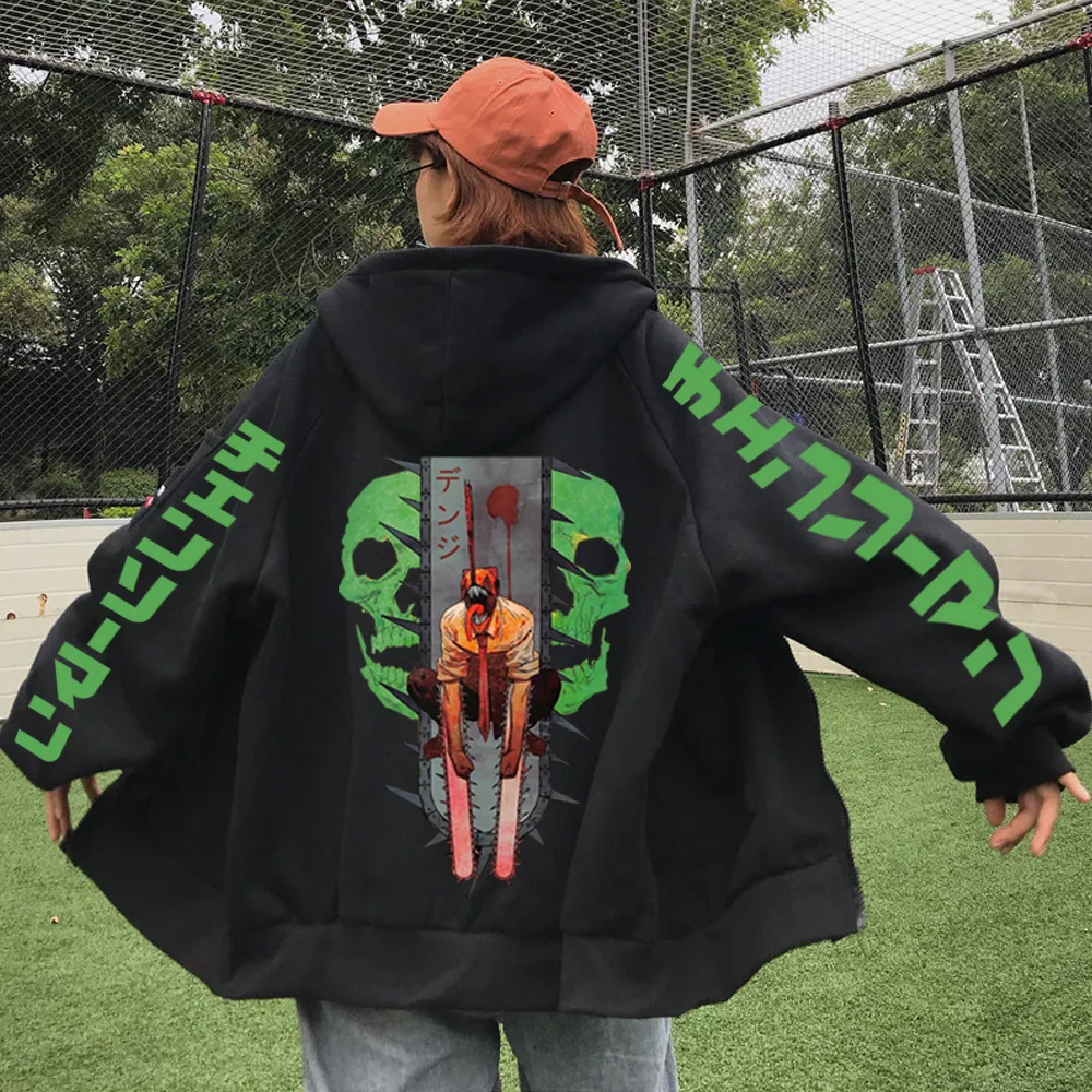 Толстовки с капюшоном для мужчин и женщин, Аниме Стиль бензопилы, куртки на молнии в стиле хип-хоп, уличная одежда для косплея манги, Свитера на молнии, модные топы с длинным рукавом