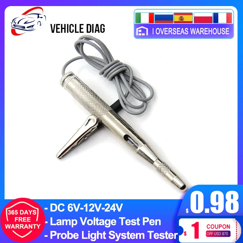 Новинка 2022, зонд постоянного тока 6 в, 12 В, 24 В, тестовая лампа для системы освещения автомобиля, тестовая цепь освесветильник автомобиля, лампа, тестер напряжения, ручка-детектор из меди