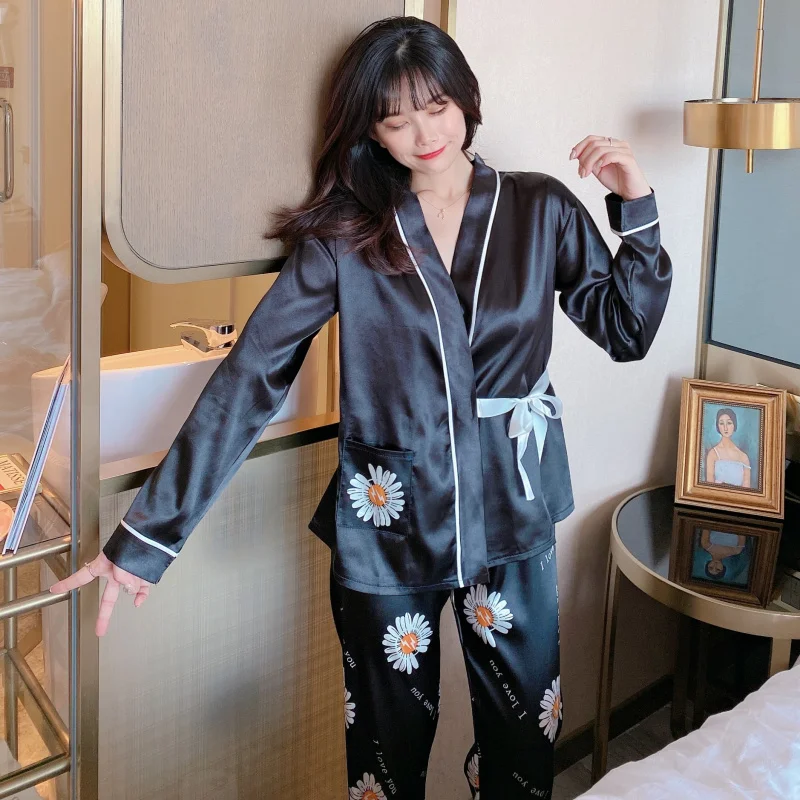 Женский Шелковый костюм-кимоно с длинными рукавами и V-образным вырезом