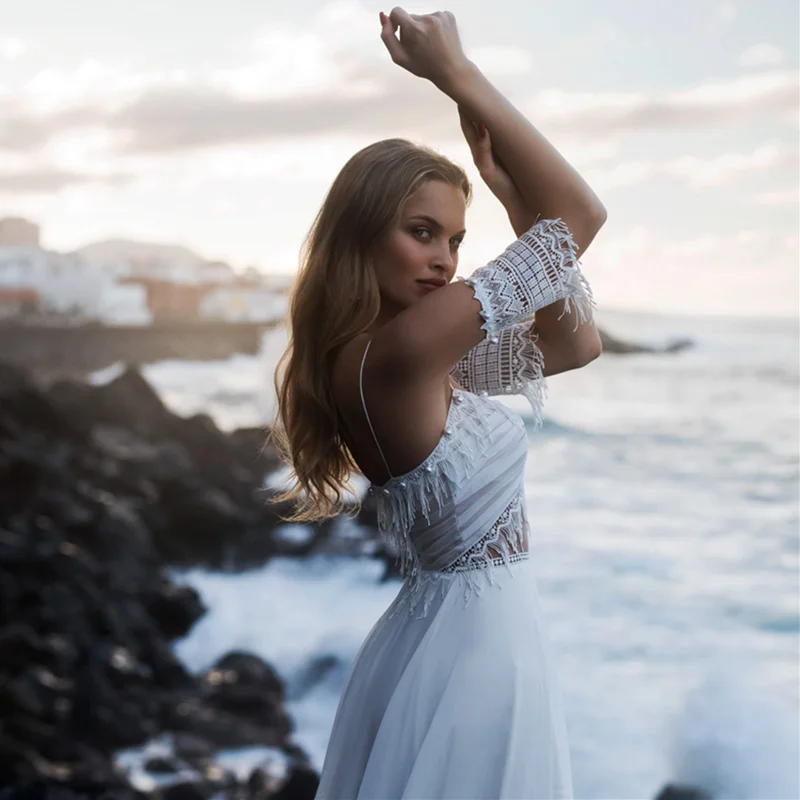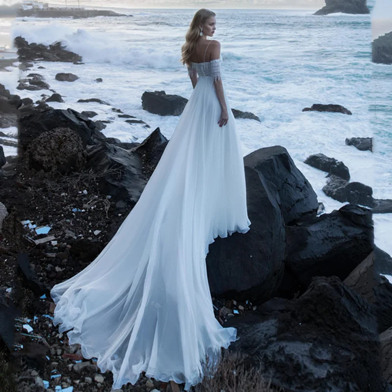 Женское свадебное платье со шлейфом It's yiiya, белое кружевное платье из двух предметов без бретелек, с жемчужинами и открытой спиной на лето 2022