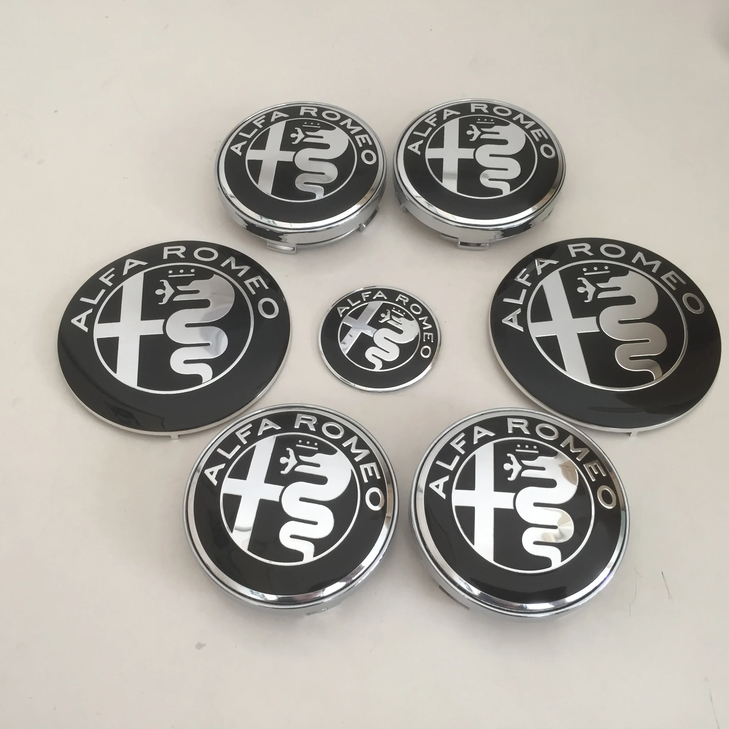 7 шт.компл. ALFA ROMEO black Автомобильная эмблема колпачки на колпачки передний колпачок значок задний багажник стикер 2x74 мм, 4x60 мм, 1x40 мм
