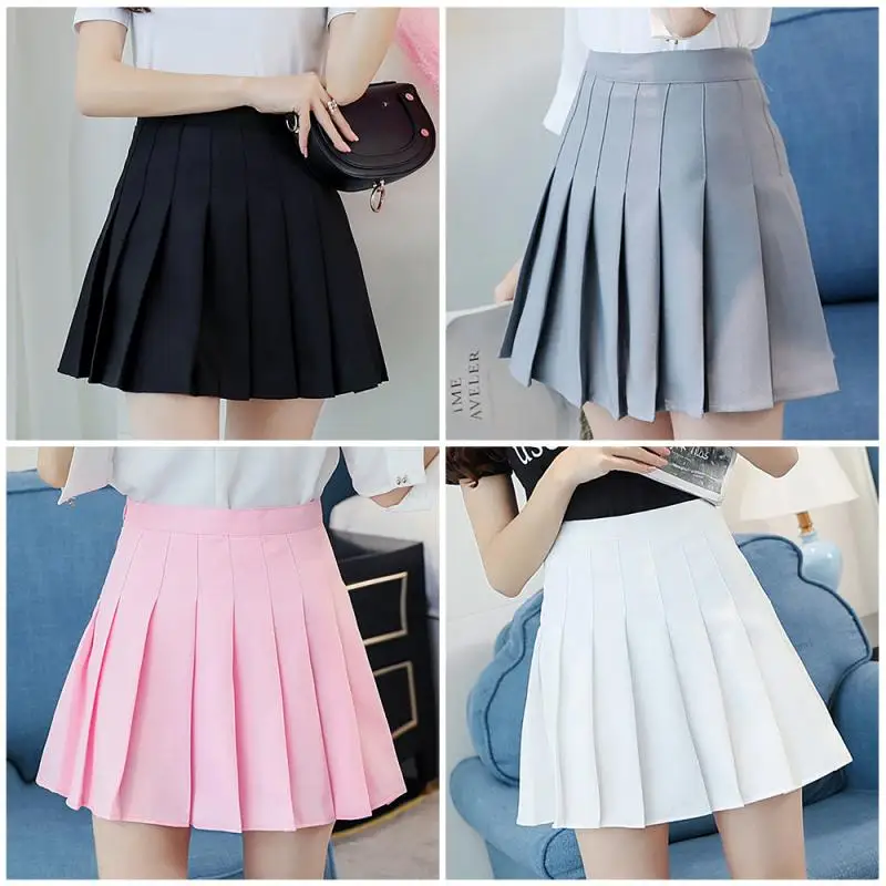Женская плиссированная юбка с высокой талией, осенняя Повседневная японская школьная форма, мини-юбки, универсальные теннисные юбки А-силуэта для девушек