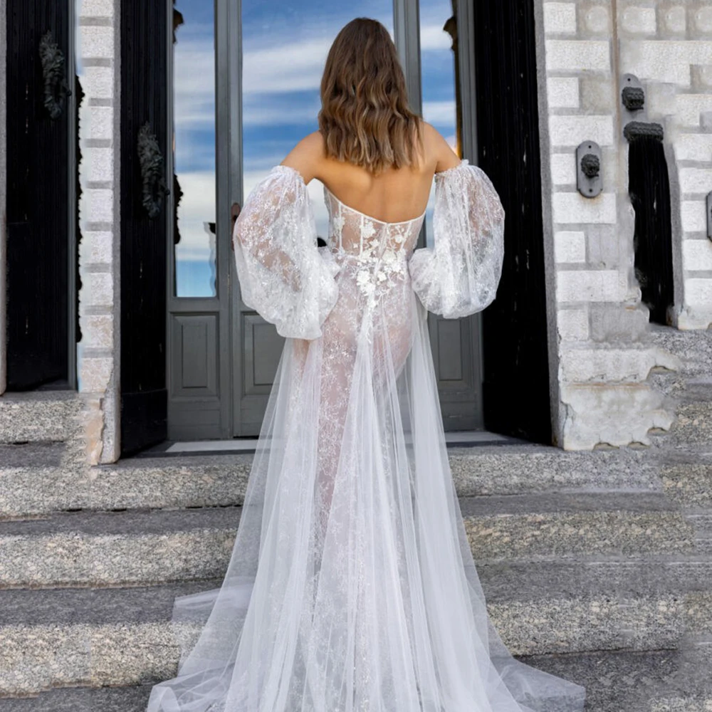 UZN сексуальные иллюзионные кружевные и тюлевые пляжные свадебные платья с пышными рукавами сердечком Свадебные платья с высоким разрезом платье для невесты платья