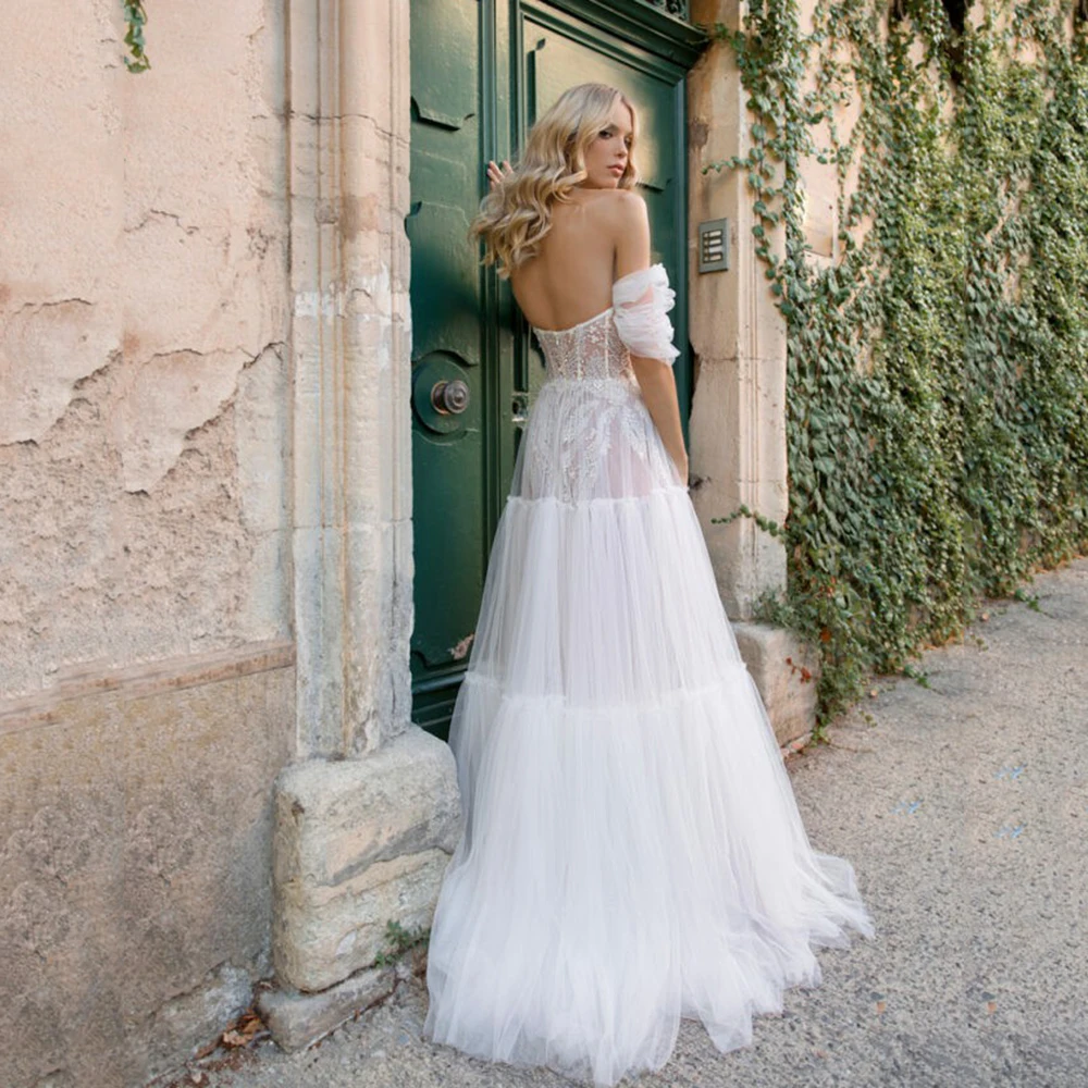 UZN шикарное кружевное и Тюлевое пляжное свадебное платье принцессы, Милое Свадебное платье с открытыми плечами и бретельками, платье невесты с бисером