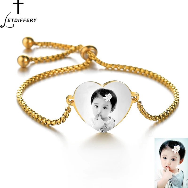 Letdiffery модные пользовательские детские фото гравировка имя регулируемый браслет персонализированные браслеты из нержавеющей стали сердца для женщин