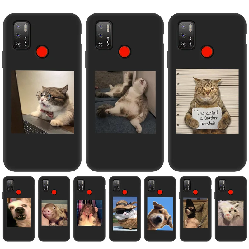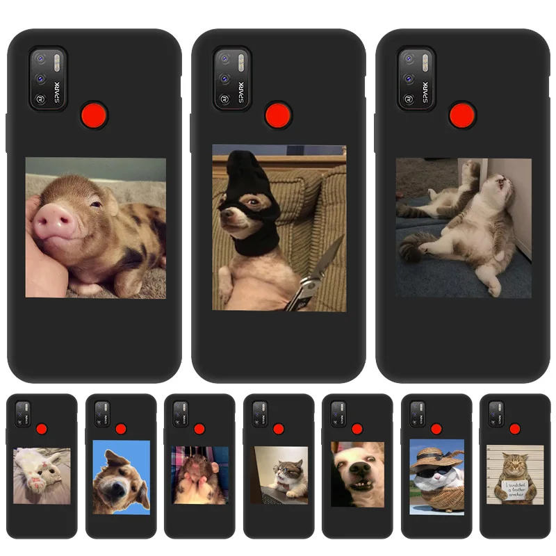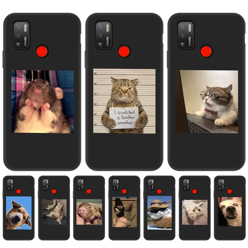 Чехол для Tecno Spark 7P, силиконовый чехол для Tecno Spark 7 6 Air 6 Pro Go 2020, чехол для Camon 12 15 Pova 2, черный чехол с животными