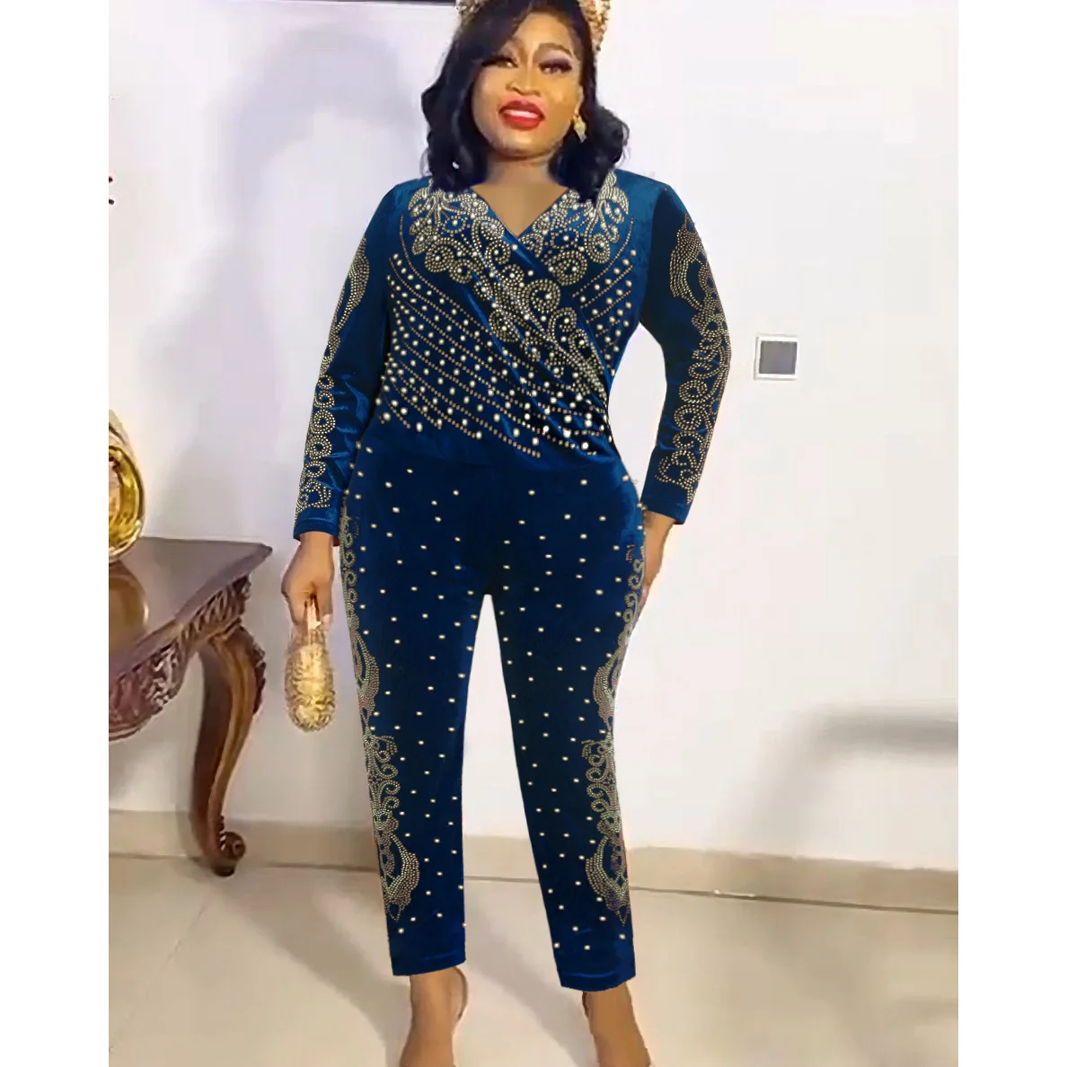 Африканская одежда из полиэстера для женщин, весна-осень, Африканский Женский Длинный комбинезон с длинным рукавом и V-образным вырезом