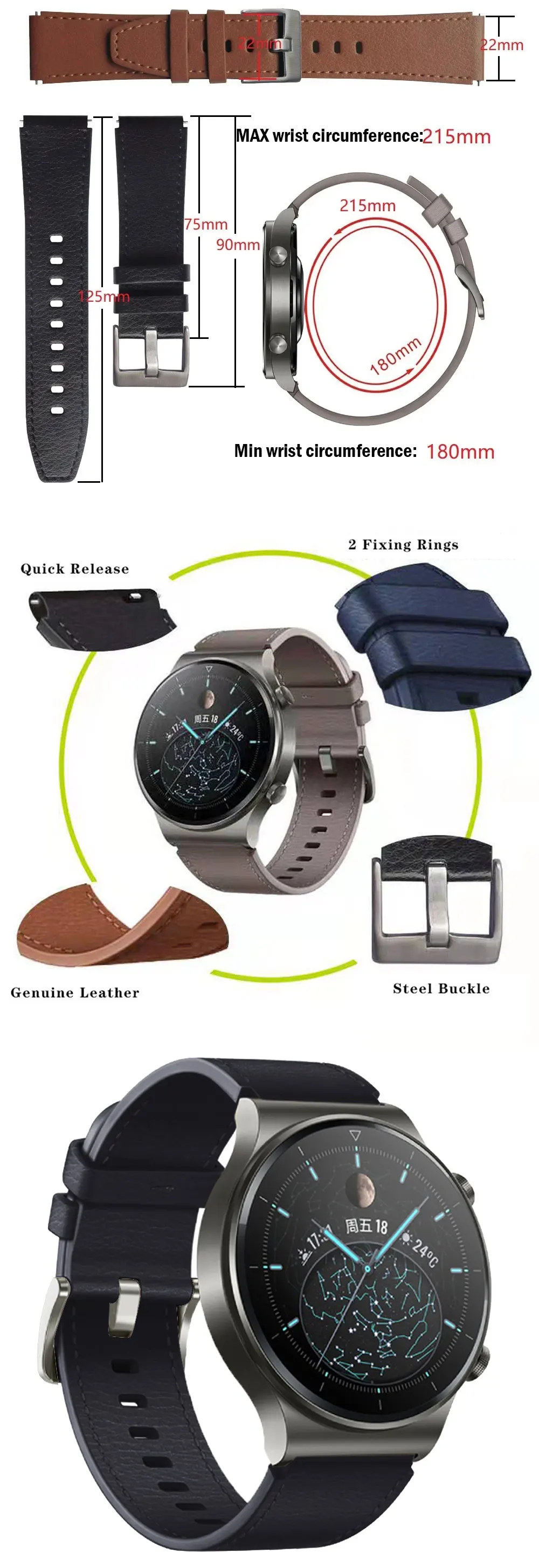Кожаный ремешок для смарт-часов Huawei Watch gt2 Gt 2 pro, официальный браслет для Huawei Watch GT3 Runner 46 мм