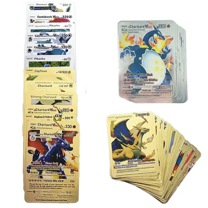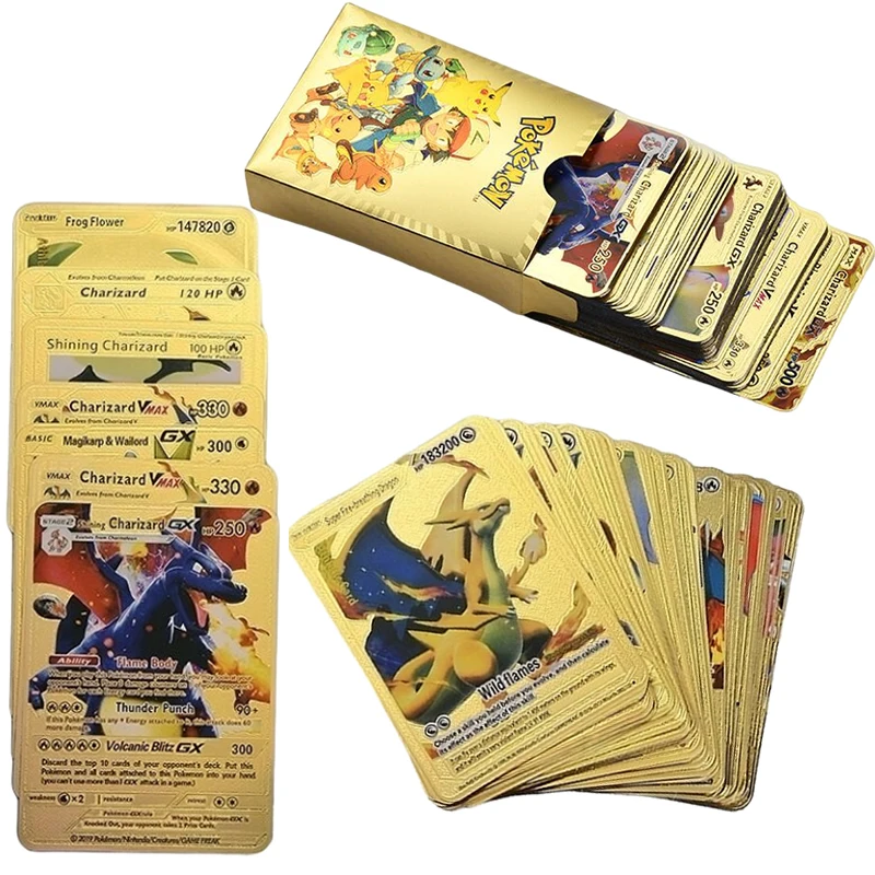 54 шт., набор карт из покемона и золотой фольги
