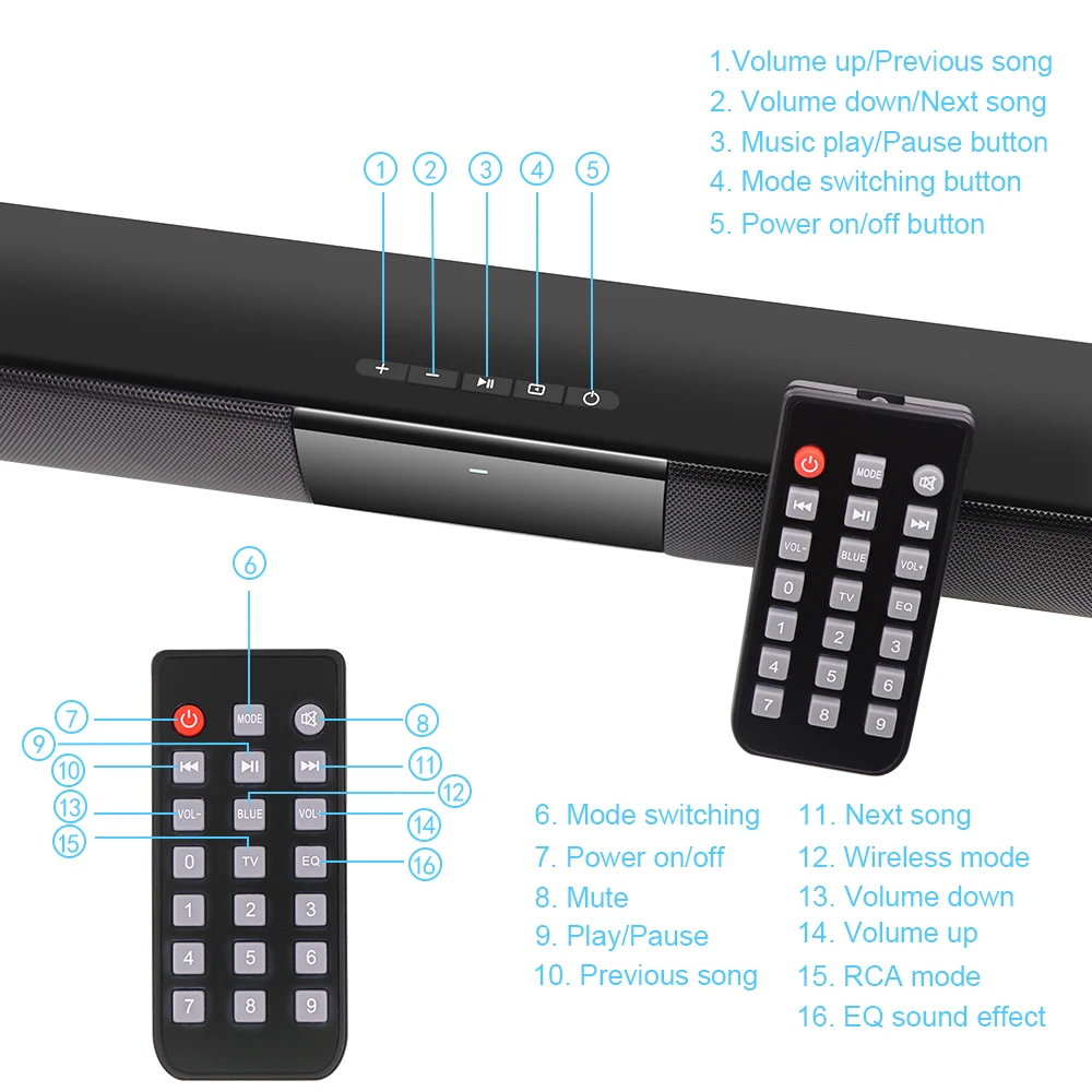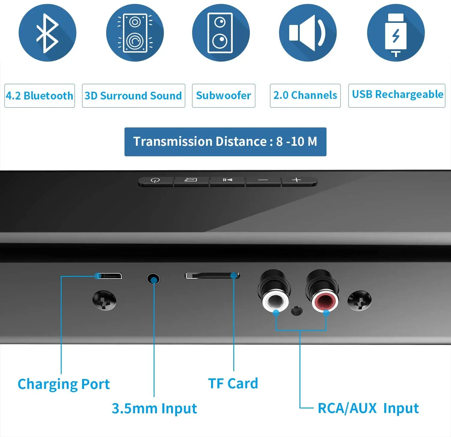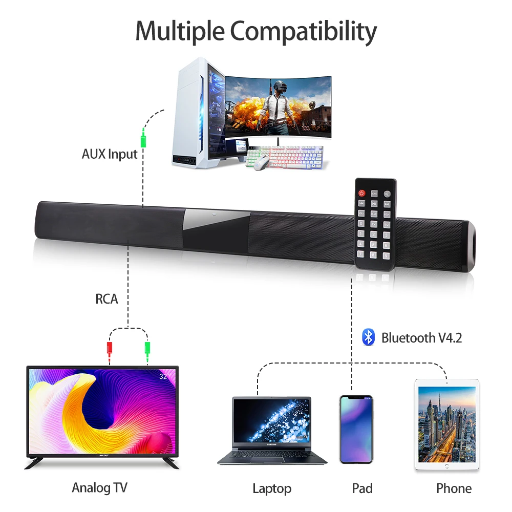 20 Вт Bluetooth Саундбар проводной и беспроводной динамик стерео динамик s Hifi домашний кинотеатр тв звуковая панель сабвуфер Колонка для смартфона