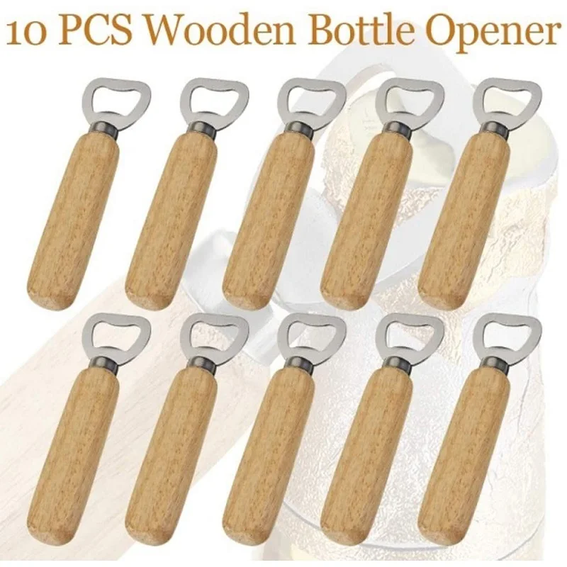 Открывалка для пива из нержавеющей стали с деревянной ручкой, 10 шт.