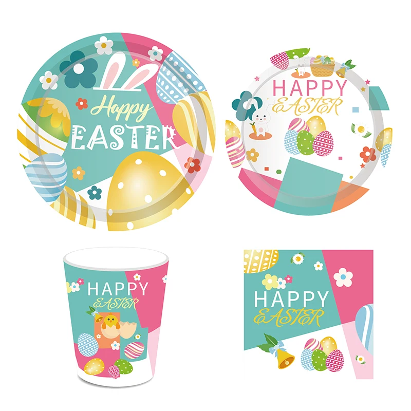 Пасхальная вечеринка одноразовая посуда пасхальные яйца кролик бумажные тарелки баннер пасхальное украшение для дома день рождения декор