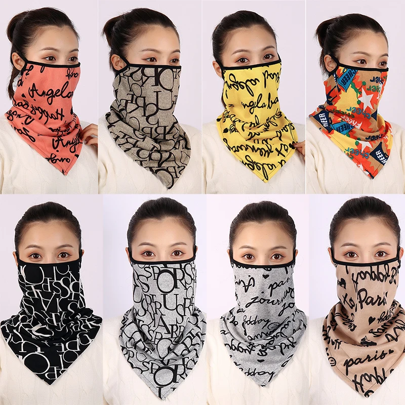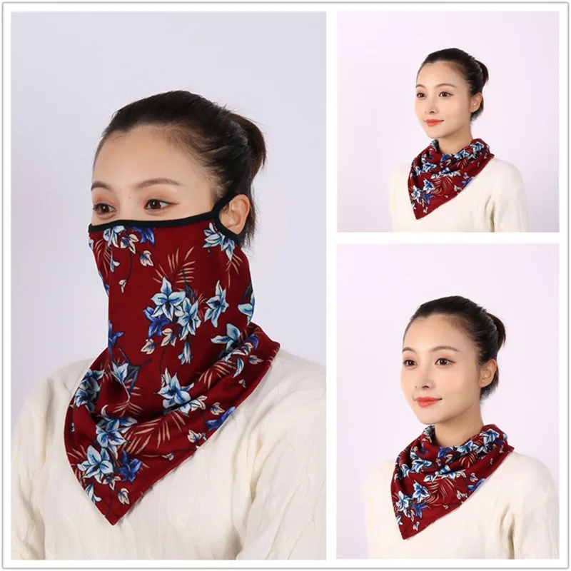 Хлопковая женская маска, шарф, маски для лица, обертывания, цветочный принт, женские теплые шарфы на шею, фуляр, бандана, многоразовые уличные маски для верховой езды