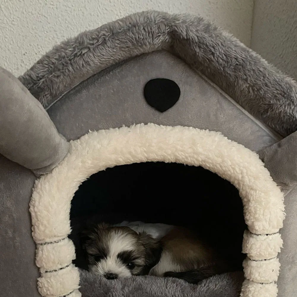 Теплый домик для собак, мягкая кровать для домашних животных, палатка для кошек, закрытая полузакрытая плюшевая губка, Лежачее гнездо для сна, корзина, съемное гнездо для домашних животных