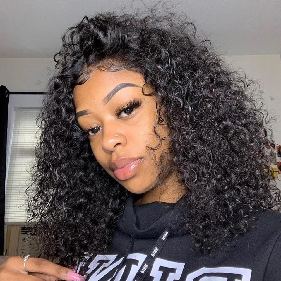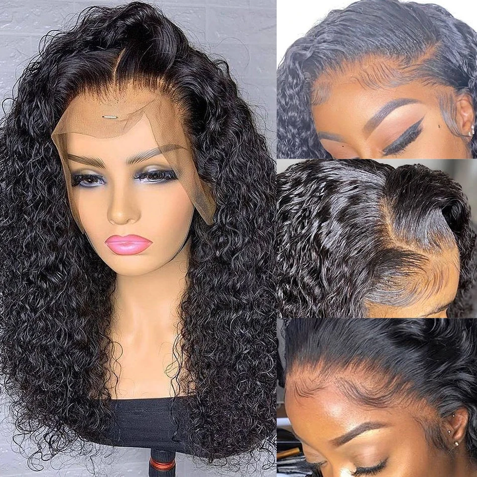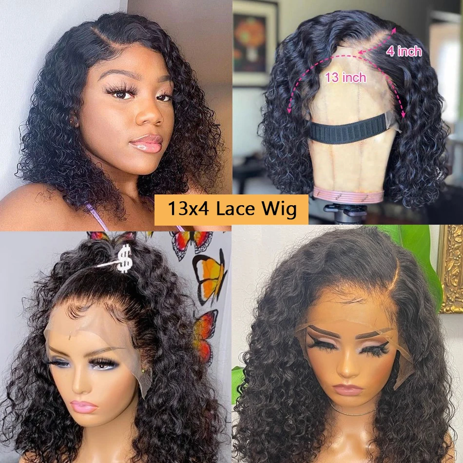 Jerry Curly 13x 4 парик с кружевной передней частью, глубокая волна, бразильские волосы, предварительно выщипанные, прозрачный Боб, парик с кружевной передней частью, человеческие волосы, парики для женщин