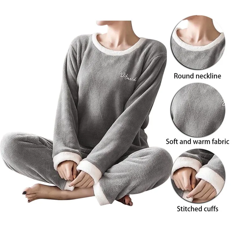 Женский зимний фланелевый пижамный комплект из 2 предметов, теплая ...