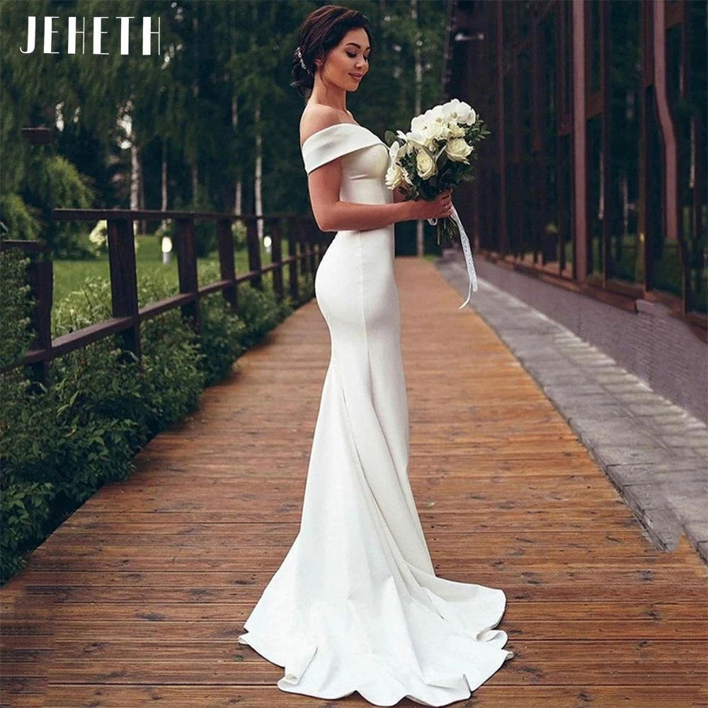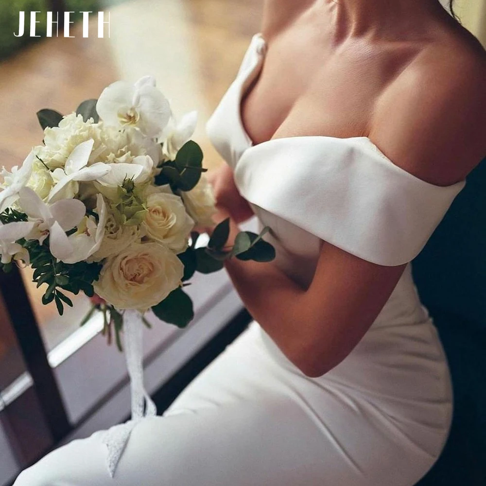 Женское атласное свадебное платье JEHETH, элегантное платье с открытыми плечами, с юбкой-годе, со шнуровкой и открытой спиной, 2022
