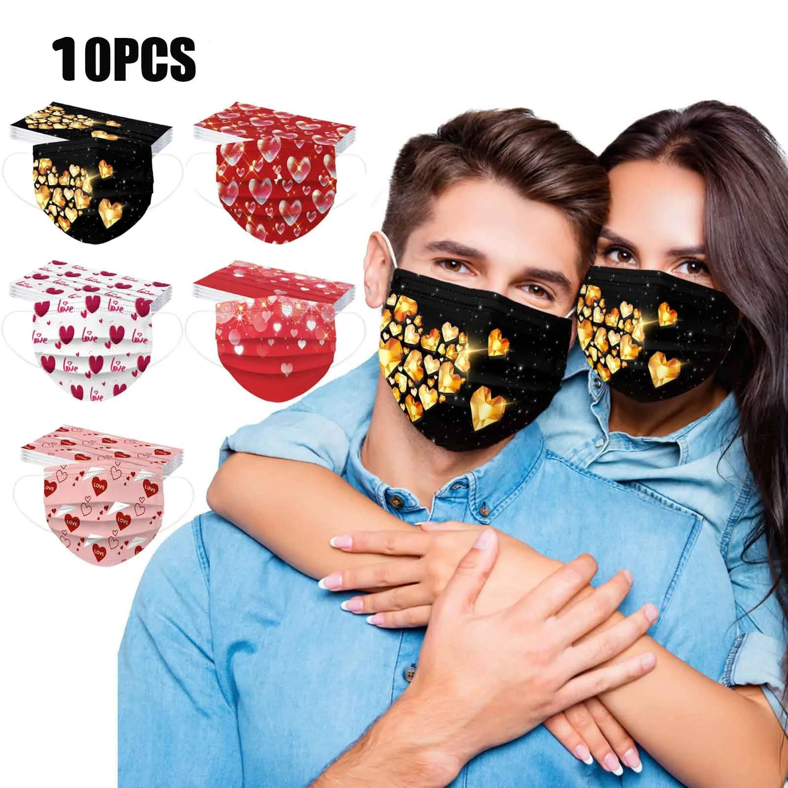 Взрослая Мужская Женская одноразовая маска на День святого Валентина Промышленная 3 слойная Ушная Петля 10 шт маска