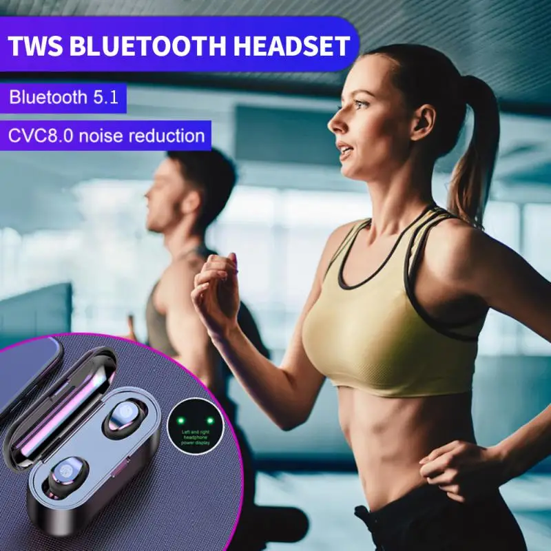 Беспроводные наушники V5.1 со светодиодной подсветкой и зарядным футляром, внешний аккумулятор, стерео мини-наушники с глубокими басами, гарнитура с микрофоном