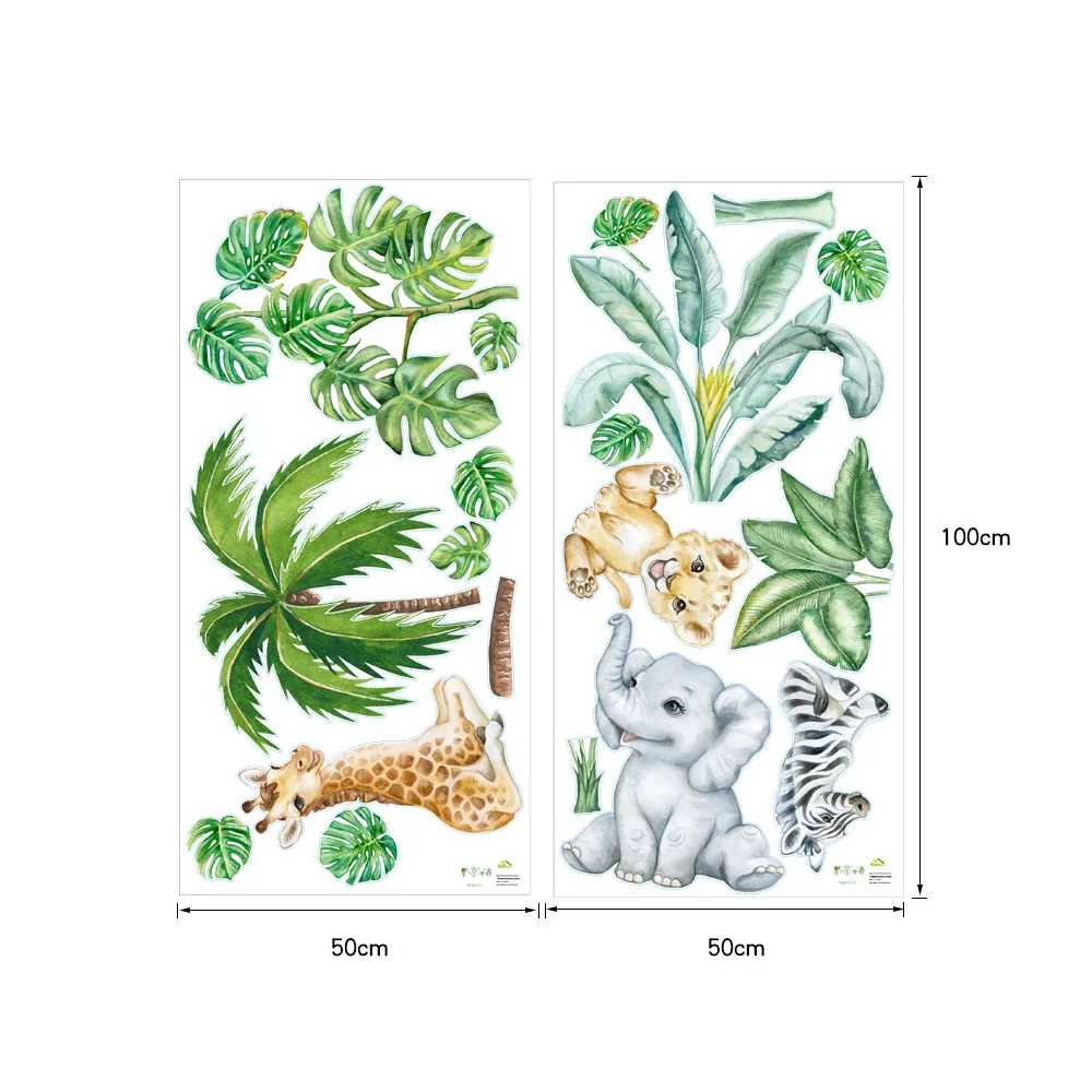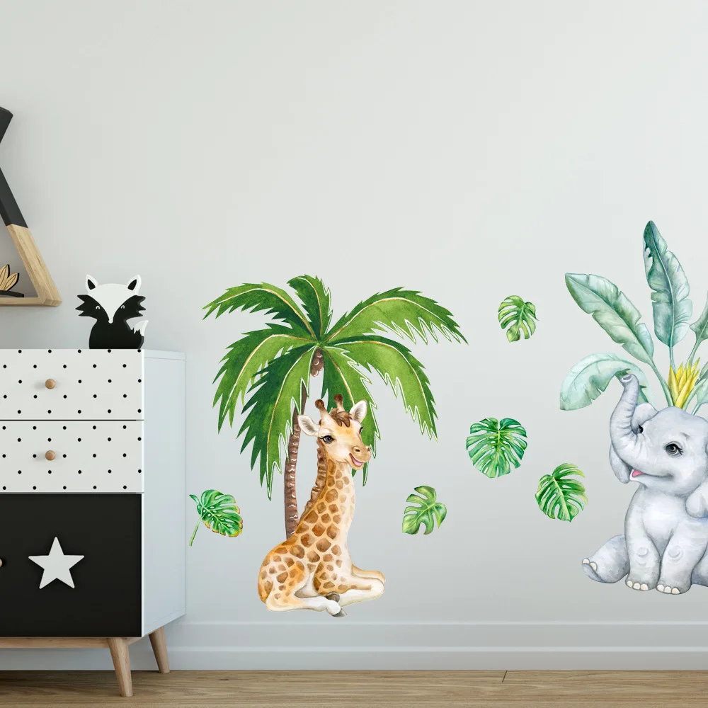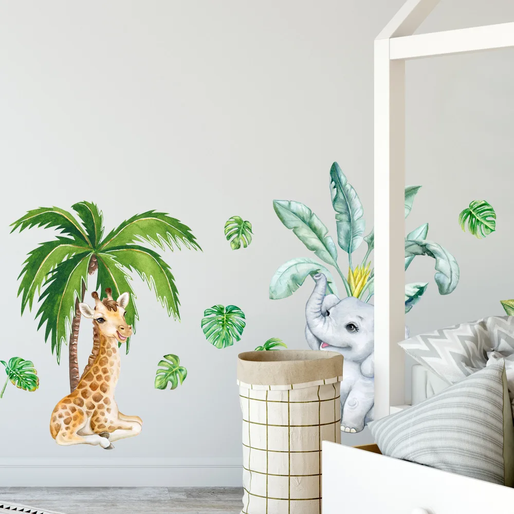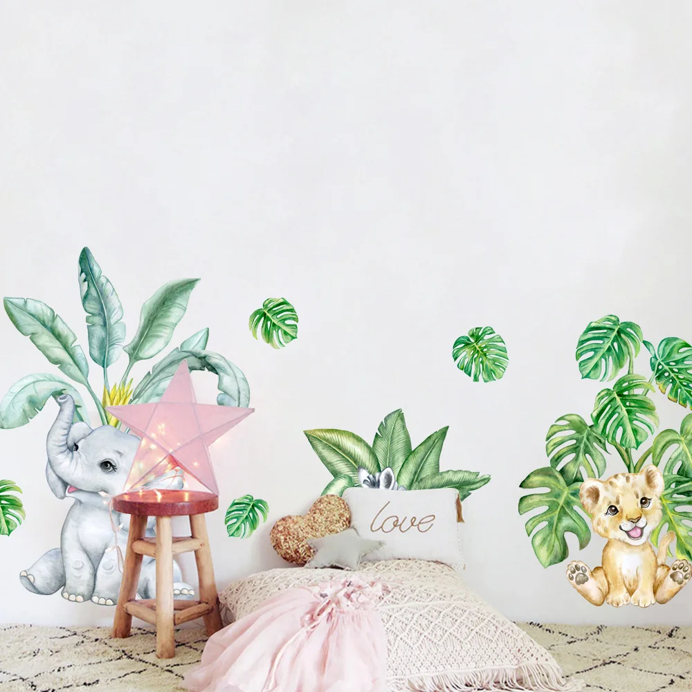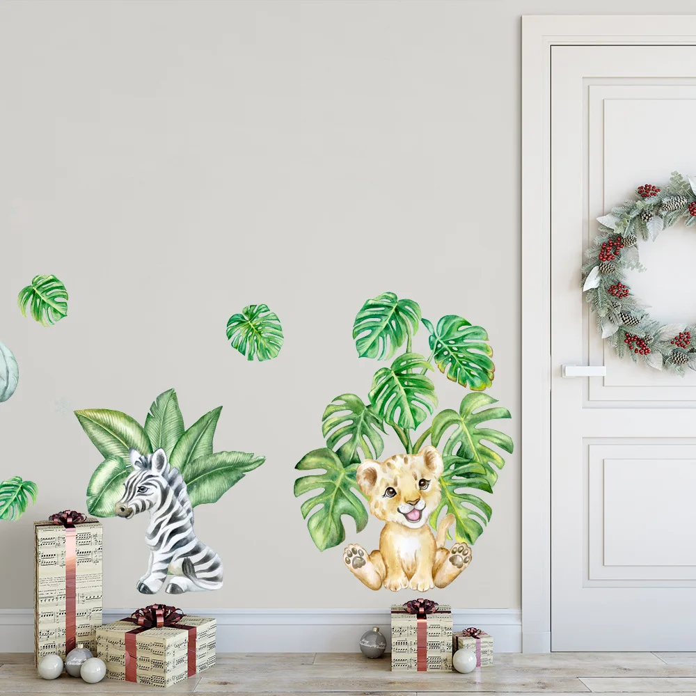 Мультяшные Африканские животные Лев тропические листья акварель стикер на стену детской Peel and Stick настенные наклейки для детской комнаты домашний декор