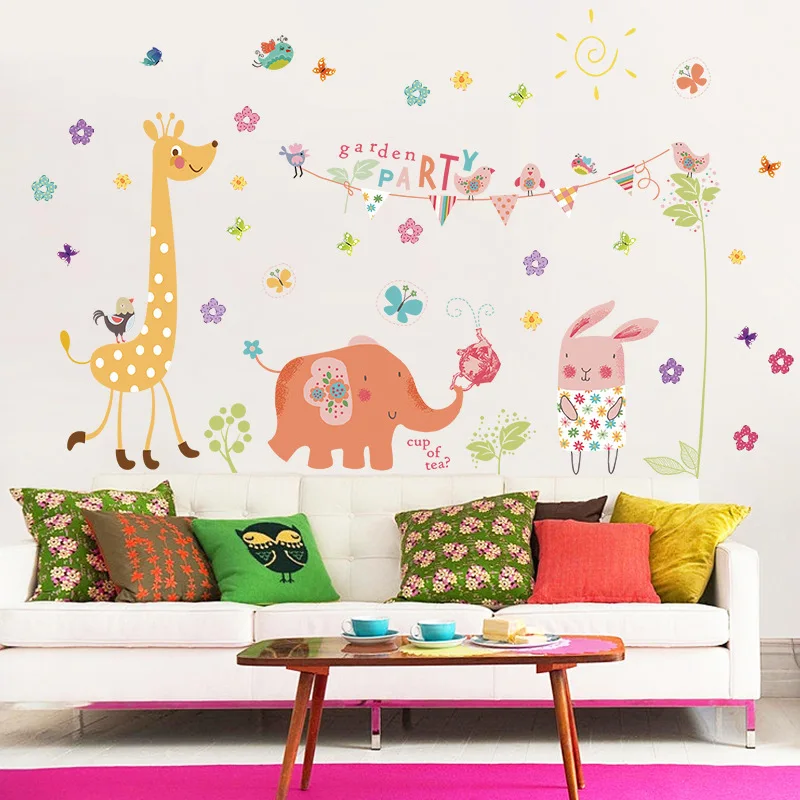 Кавайные животные из мультфильма наклейки на стену для украшения де...