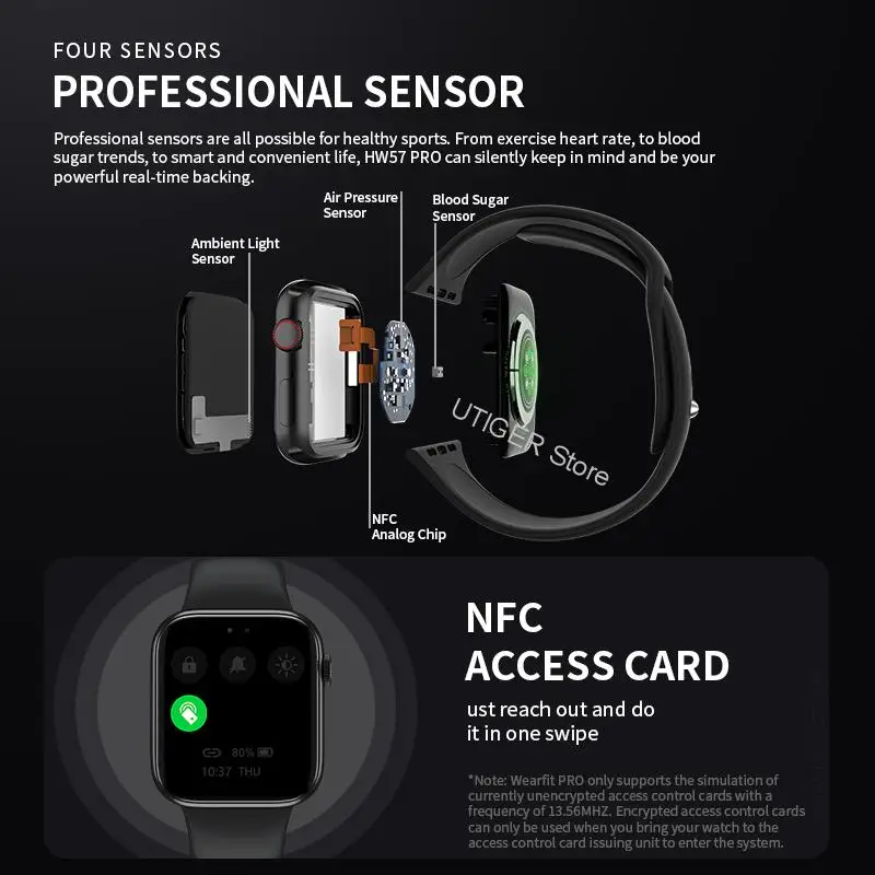 Оригинальные Смарт-часы HW57PRO, Смарт-часы с NFC, серия 7 Siri, Bl...