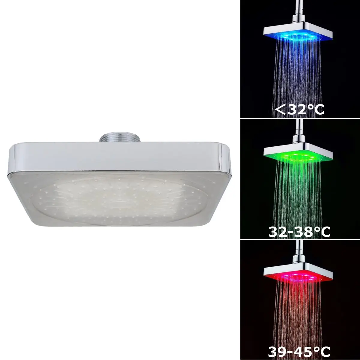 6-дюймовая светодиодсветильник квадратная насадка для душа с функцией дождя, 3 цвета