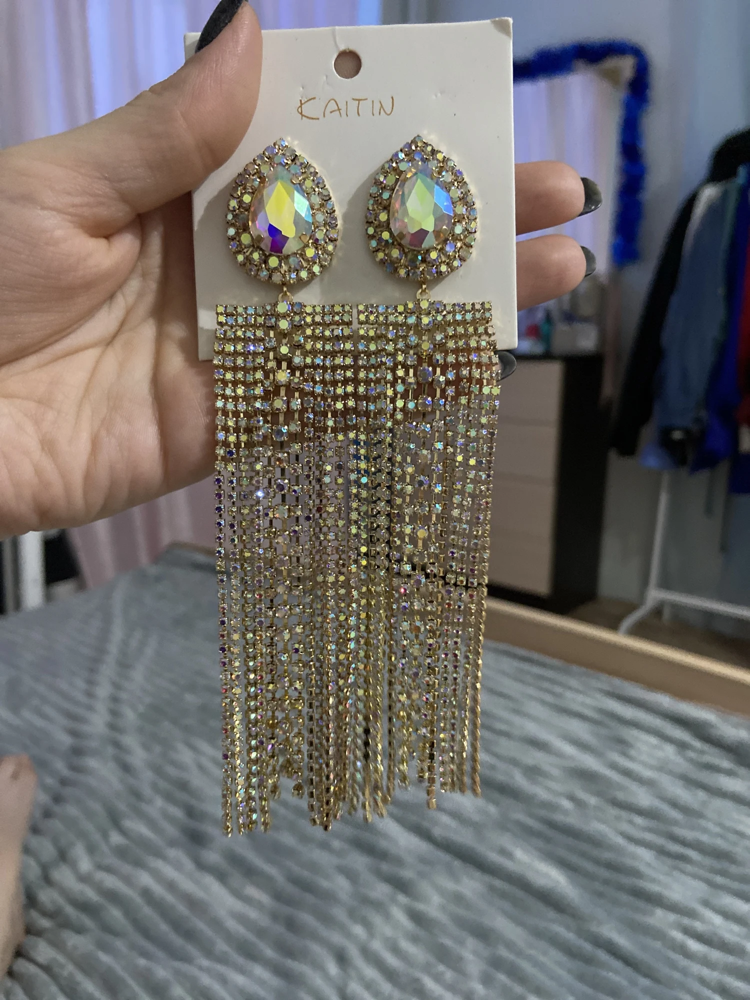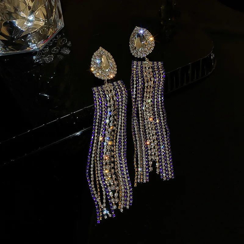 Женские серьги-подвески XIALUOKE, черные Разноцветные серьги с кристаллами в виде капли воды, большие длинные Стразы с кисточками, эффектные ювелирные изделия