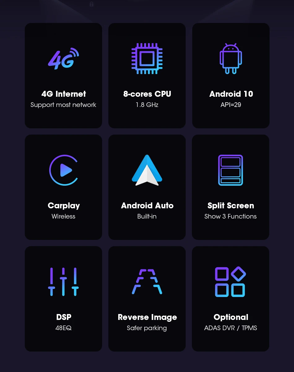 Реальная система Android 10,0, поддержка разделенного экрана приложения, сделает ваше использование более привлекательным, поддерживает более новейшие приложения.