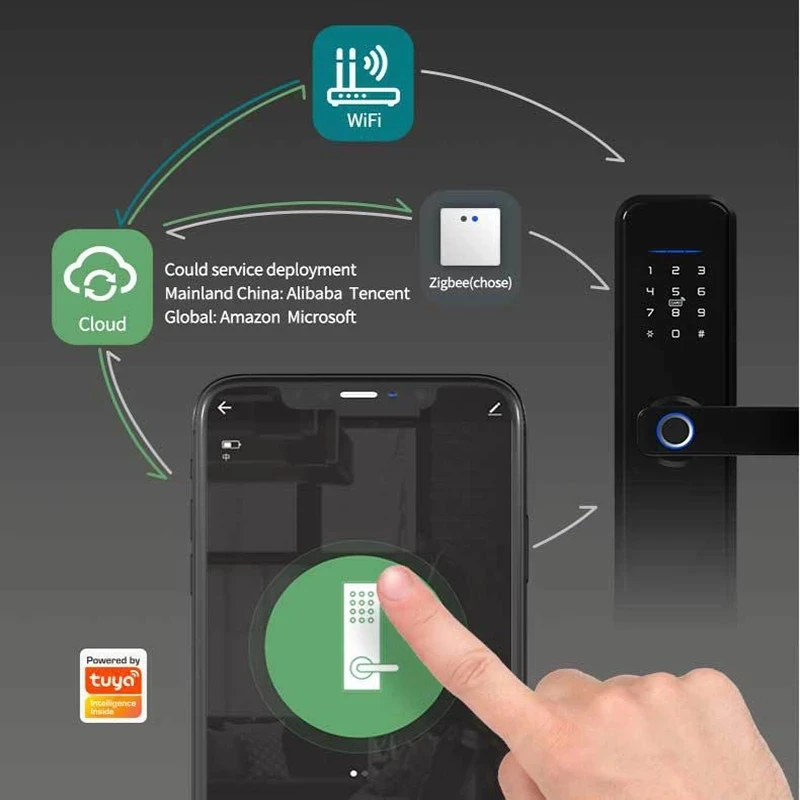 Tuya APP блокировка отпечатков пальцев, электронный цифровой WiFi умный дверной замок Пароль RFID карта ключ отпечатков пальцев приложение разблокировка безопасности дома