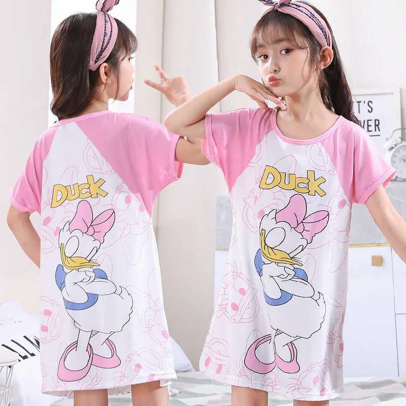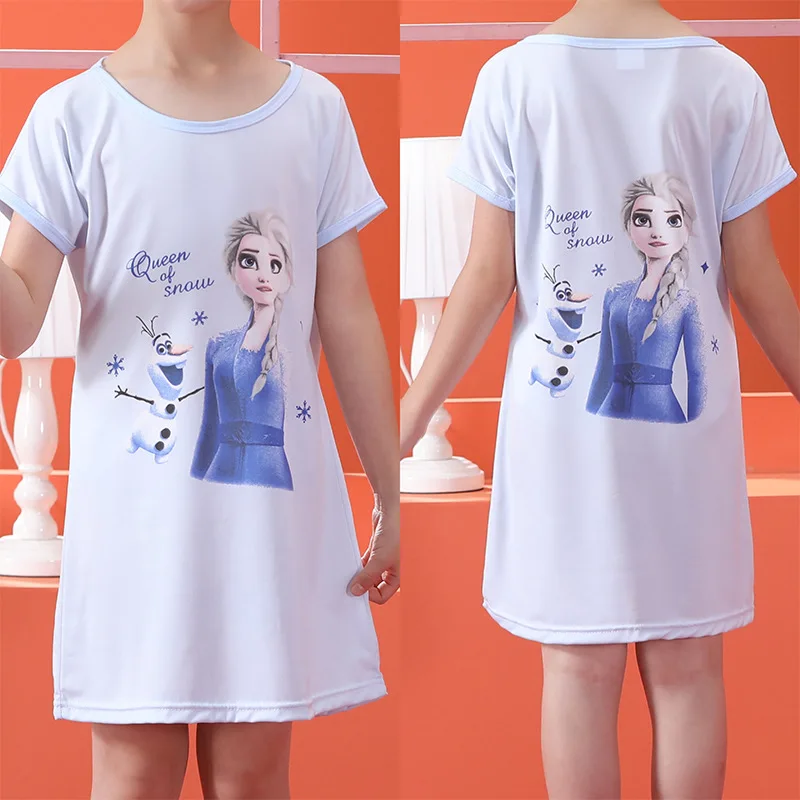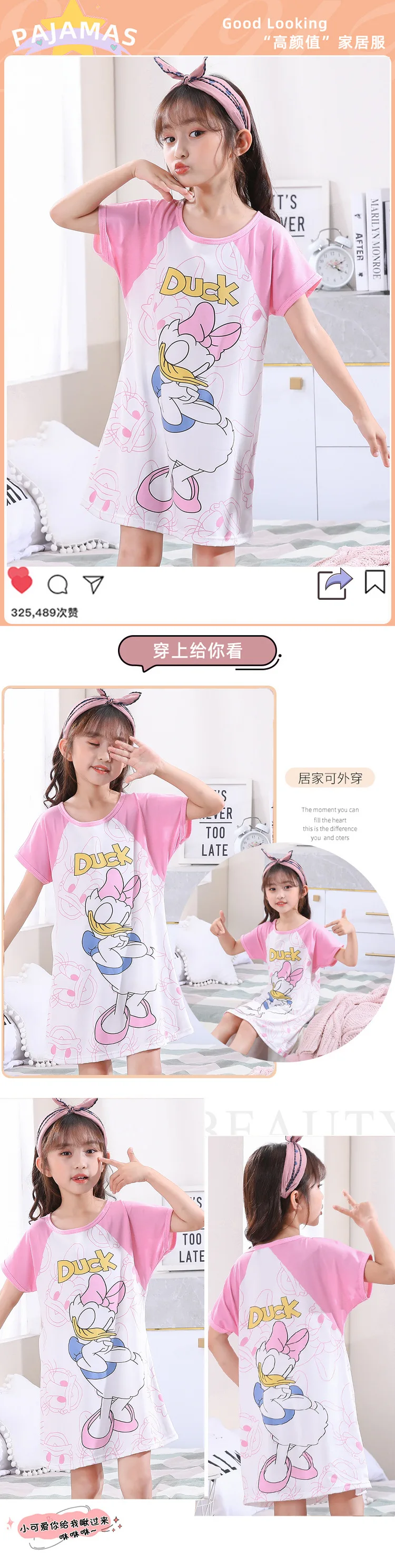 Детская ночная рубашка, милая Пижама для маленьких девочек-подростков, детские осенние ночные платья с коротким рукавом и мультипликационным рисунком